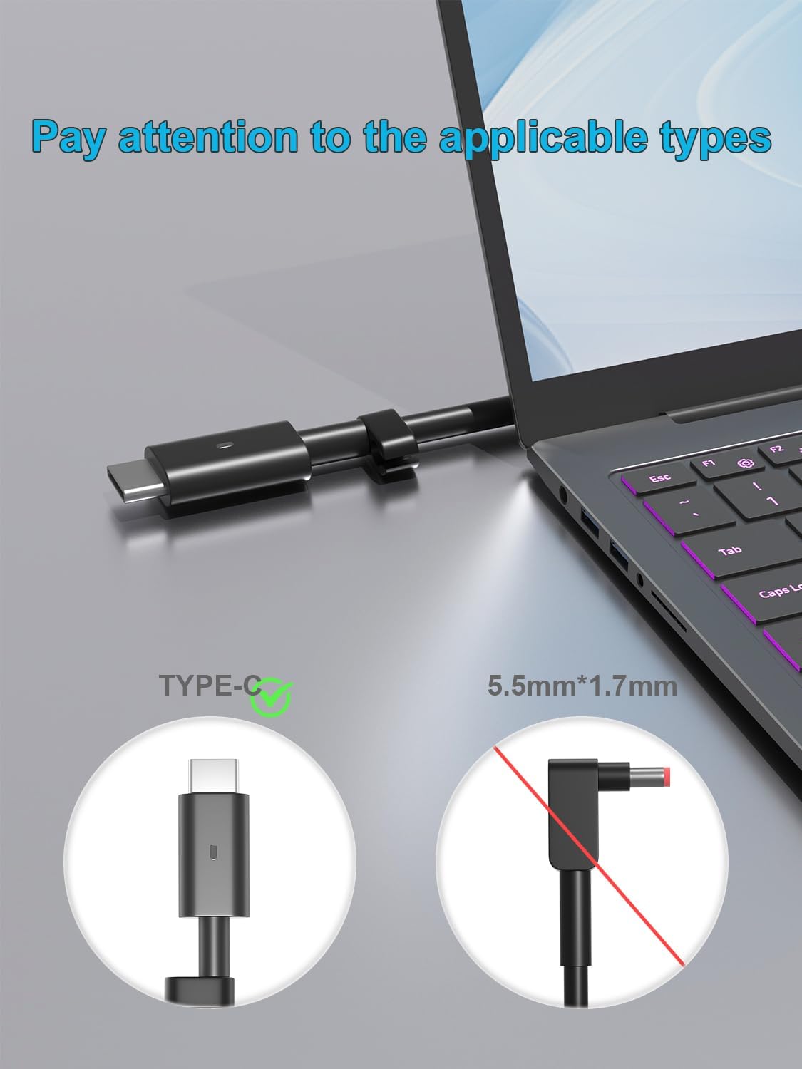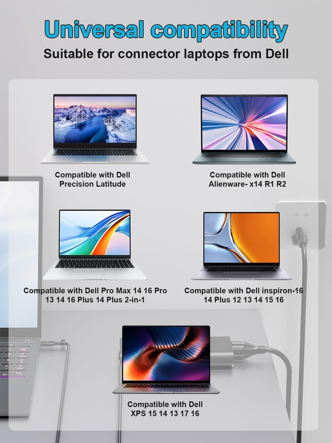 Specification: Input Voltage: 100-240V, 50-60Hz (Worldwide use), Output Voltage: 130W 20V/6.5A, (also Works for 100W 90W 65W45W Wattage Devices).Power Jack Connector Type: USB Type C. (It is not fit for laptops devices requiring more than 130W)