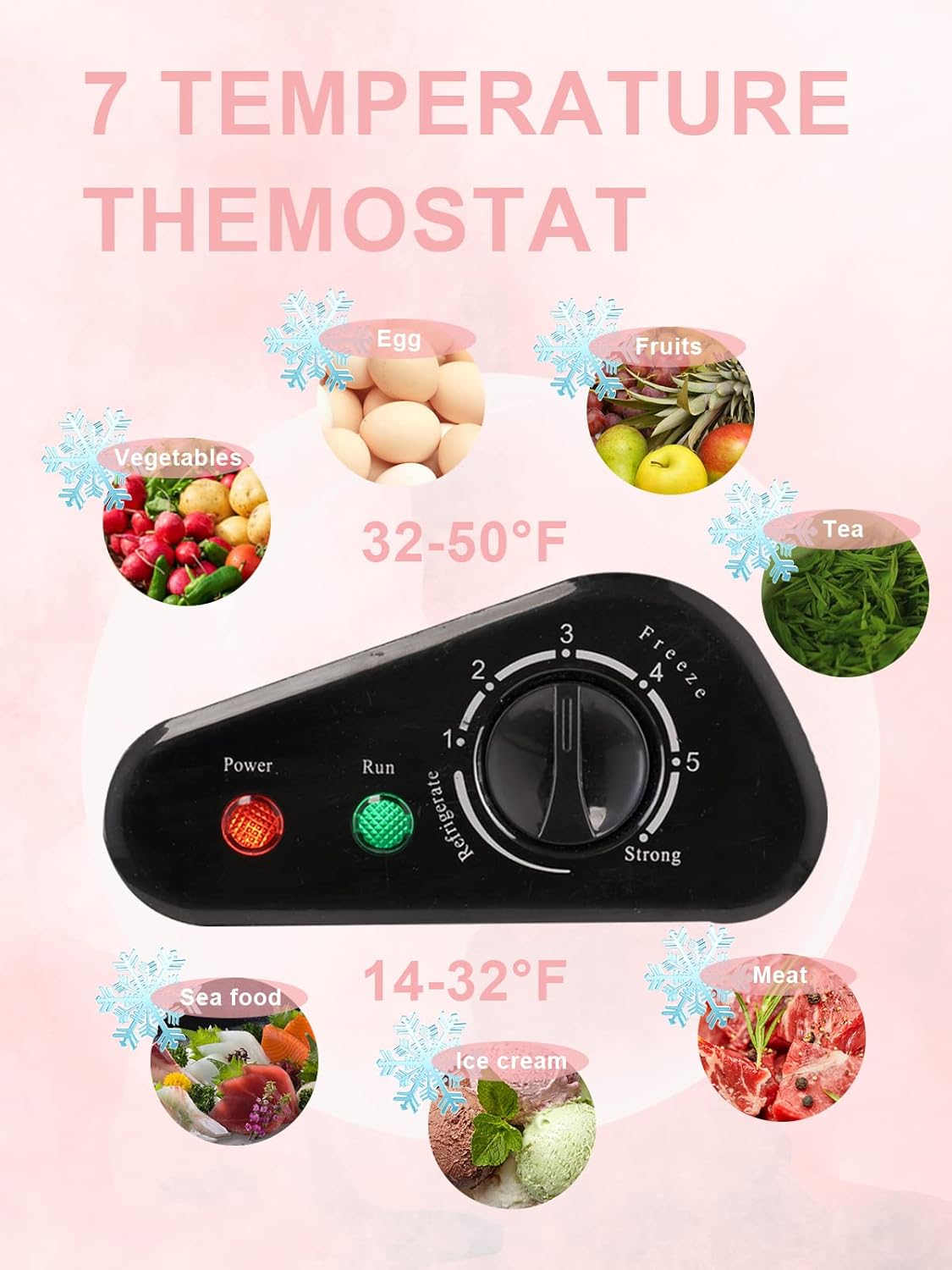 🍧 Flexible Temperature Control: This chest freezer is equipped with an external adjustable thermostat, which is 7 levels temp adjustable. The higher the level you set, the lower the temperature will be, which greatly meets the demand of your daily life for food storage.
