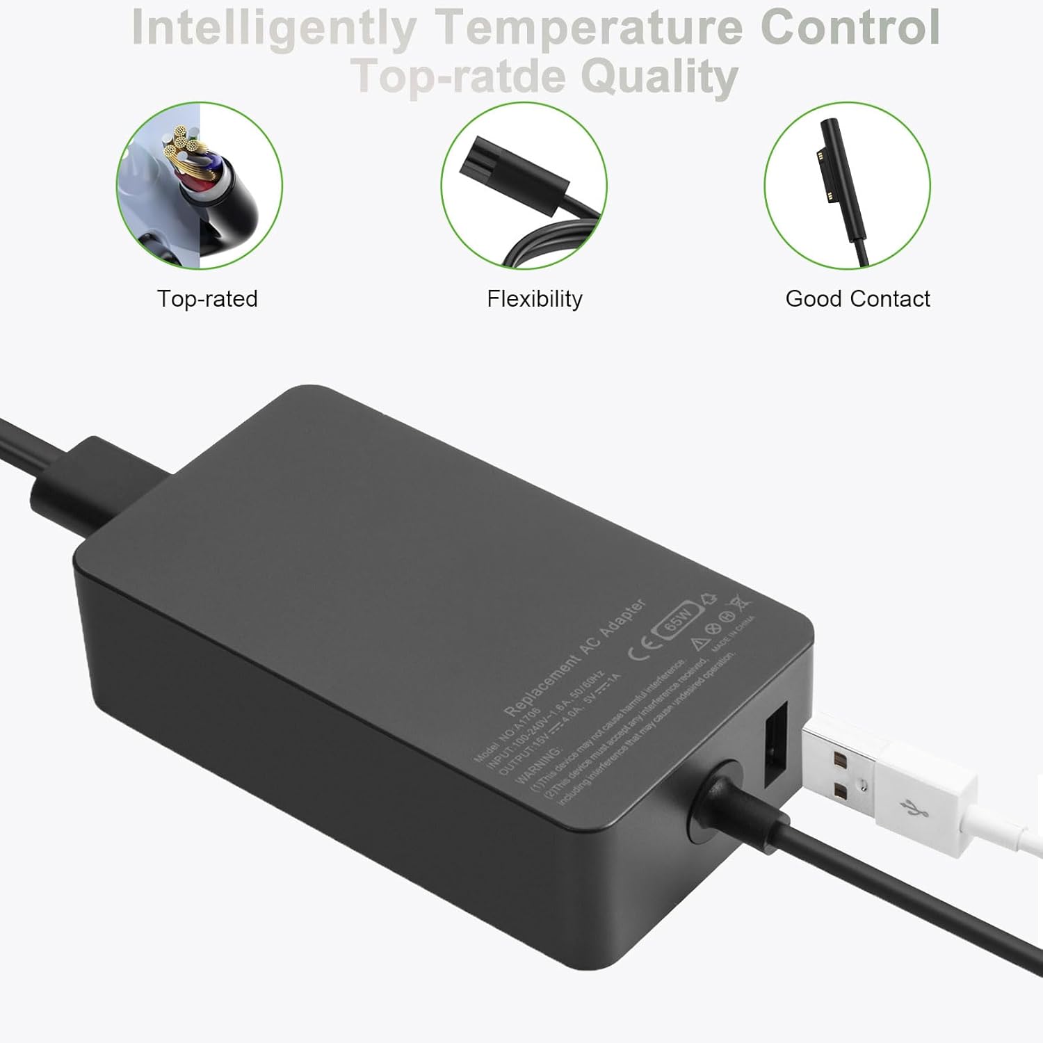 Wide Compatibility: Compatible with a broad range of Microsoft Surface models, including: Surface Pro 10, 9, 8, 7+, 7, 6, 5, 4, 3, X, Surface Studio 1 i5, Windows Surface Laptop 6, 5, 4, 3, 2, 1, Surface Book 3, 2, 1, Surface Go 3, 2, 1, It is an ideal replacement for the original Microsoft Surface charger