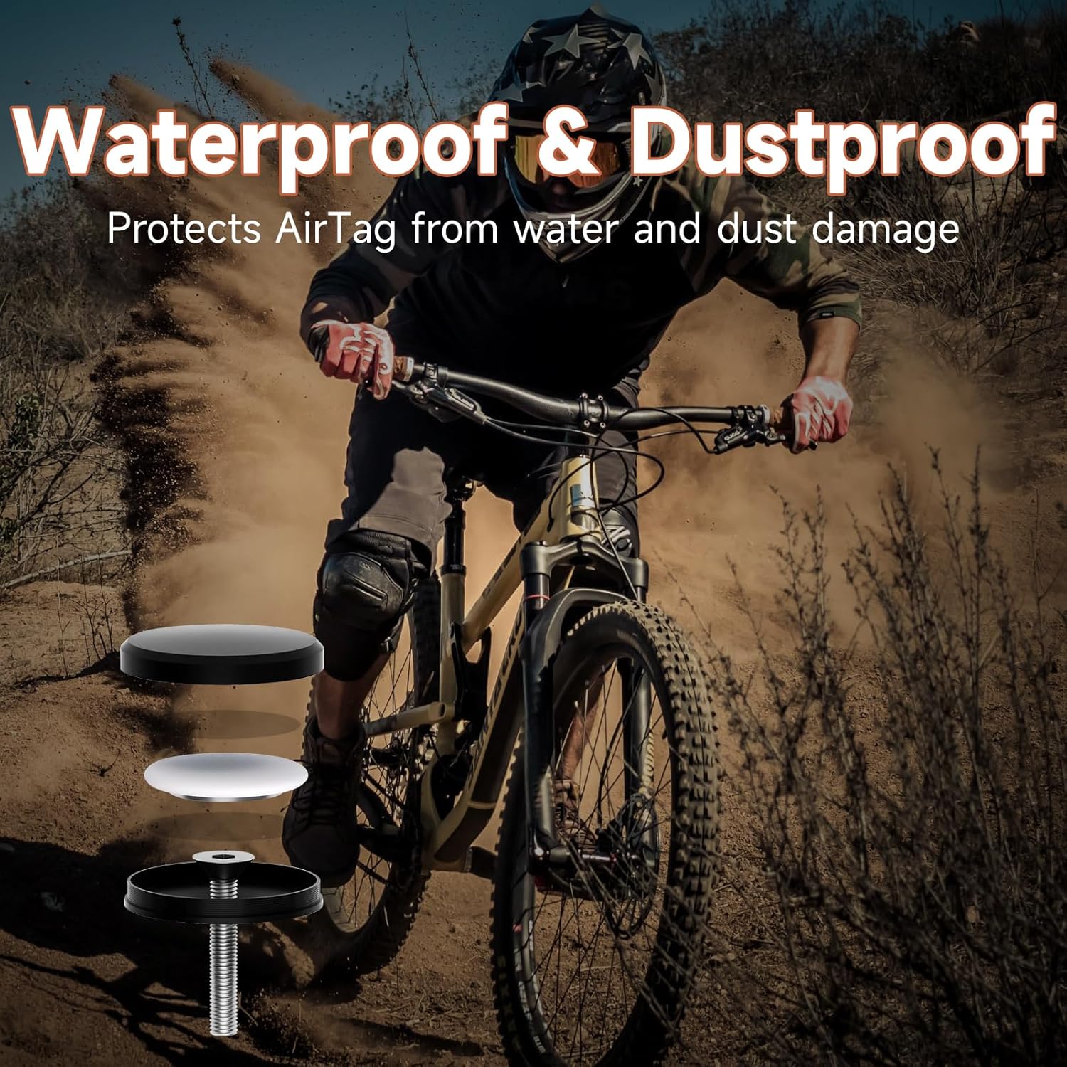 Complete Eco-Friendly Kit: Every purchase includes an aluminum alloy cover, two aluminum alloy bases, a stainless steel screw, and two protective stickers—everything needed for a secure and seamless fit. Our product adaptation is perfect for bike stem tops and is fully compatible with AirTag, featuring ultra-fine thread pitch that ensures a waterproof seal without the need for additional sealing rings.