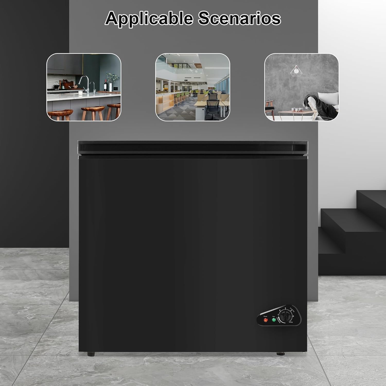 Multi-function Design: This chest freezer also has 2 hanging basket for top storage, which is convenient for you to organize and store your ice cream, meat, drinks etc. And also it could prevent these food from being crushed by other items. If it get frost inside, you could use the defrosting scraper to shave them off and let it went away through the drainage hole at the bottom.