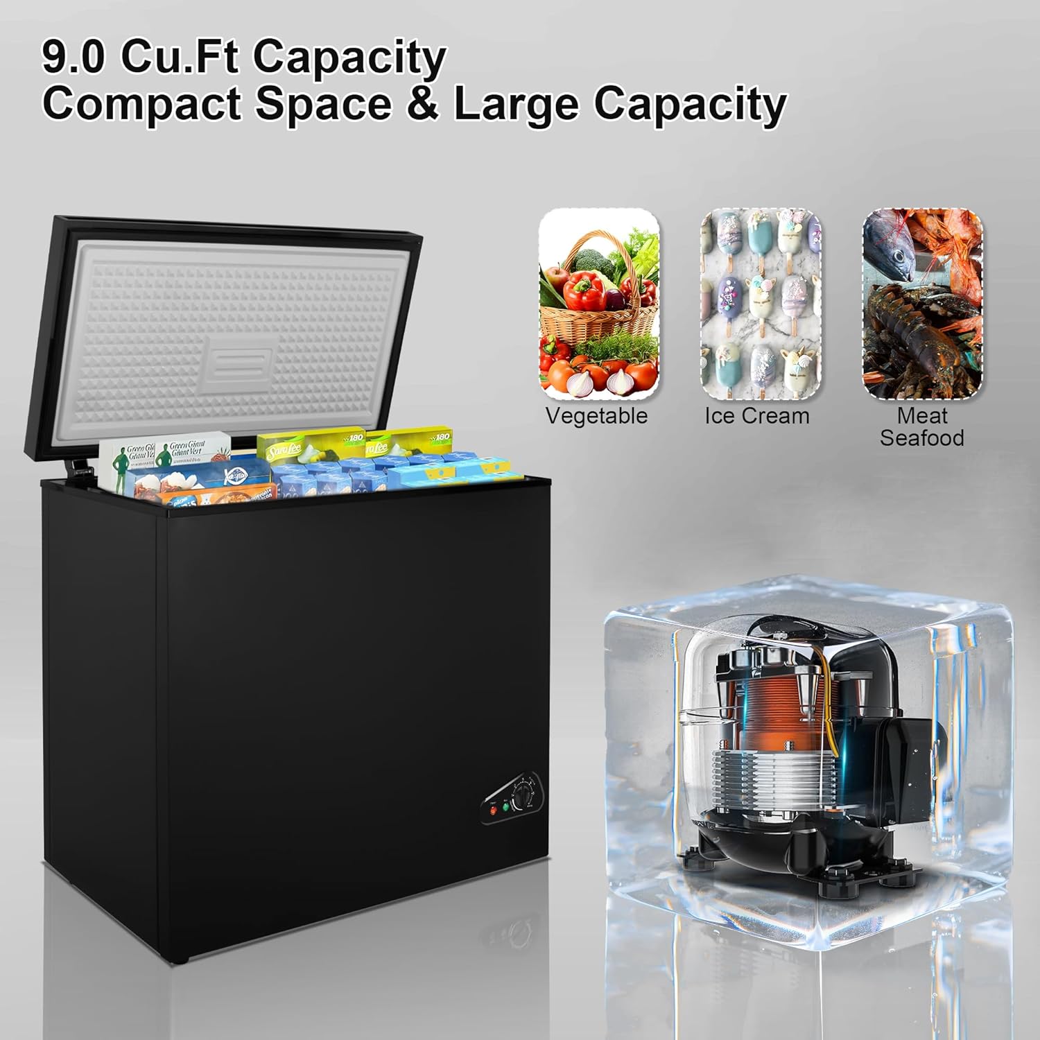 9.0 Cu Ft Compact Chest Freezer with 2 Removable Storage Basket