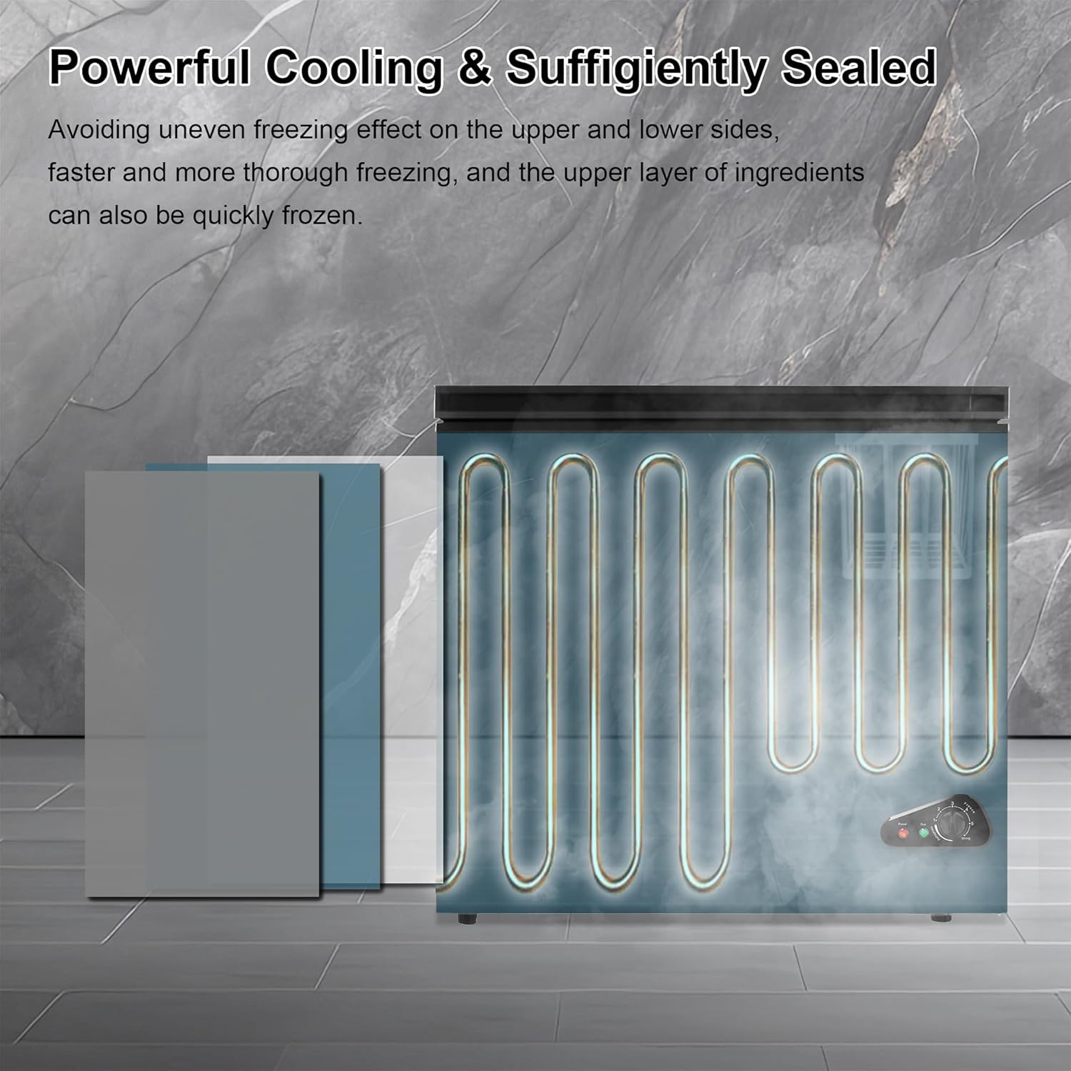 Easy Temperature Adjustment: This chest freezer is equipped with an external adjustable thermostat, which is 7 levels temp adjustable. The higher the level you set, the lower the temperature will be, which greatly meets the demand of your daily life for food storag