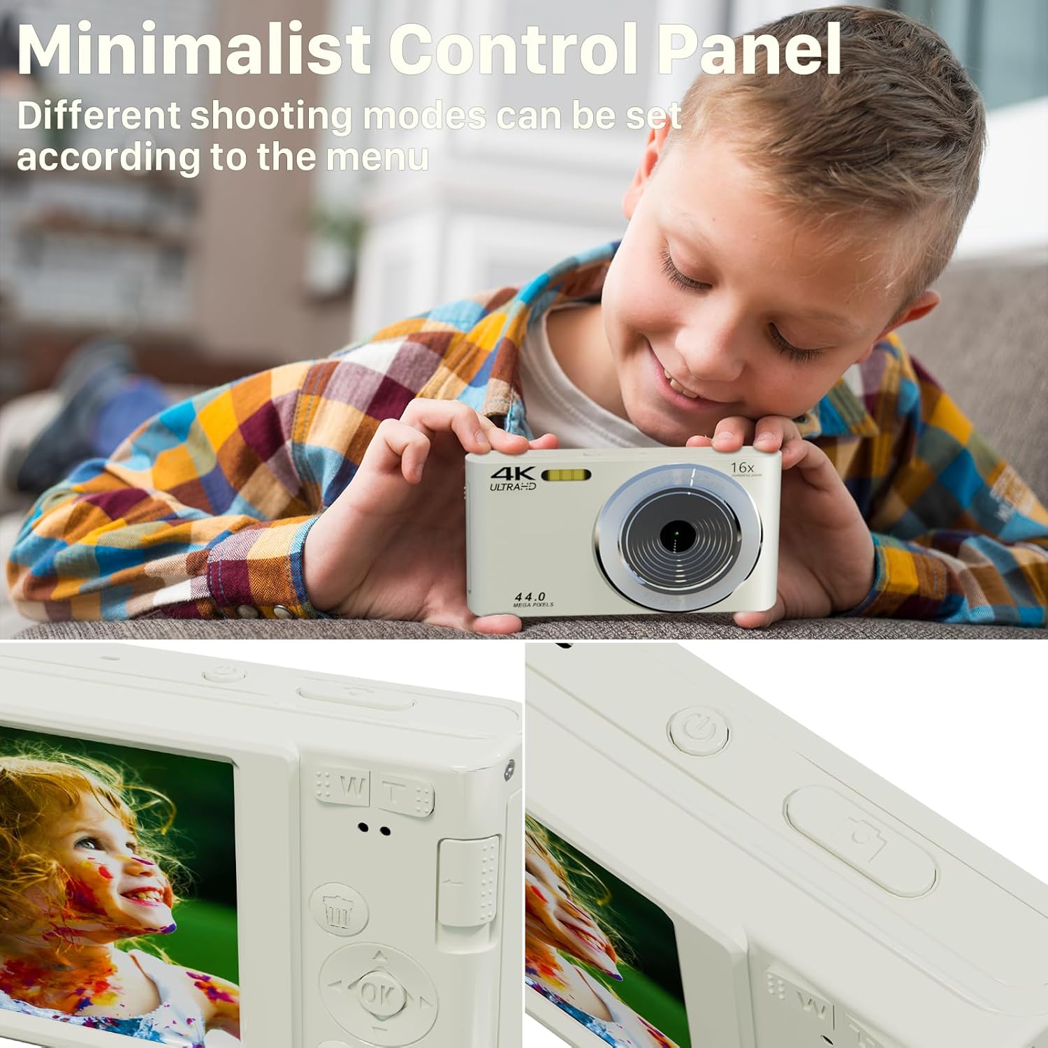 【Multifunctional】 This FHD 4 K digital camera for teens also has features such as timed photos, slow motion video, video pause, triple shot, multiple filters, and more, all of which allow you to customise your photos in a more creative way. Enjoy the fun of taking photos!