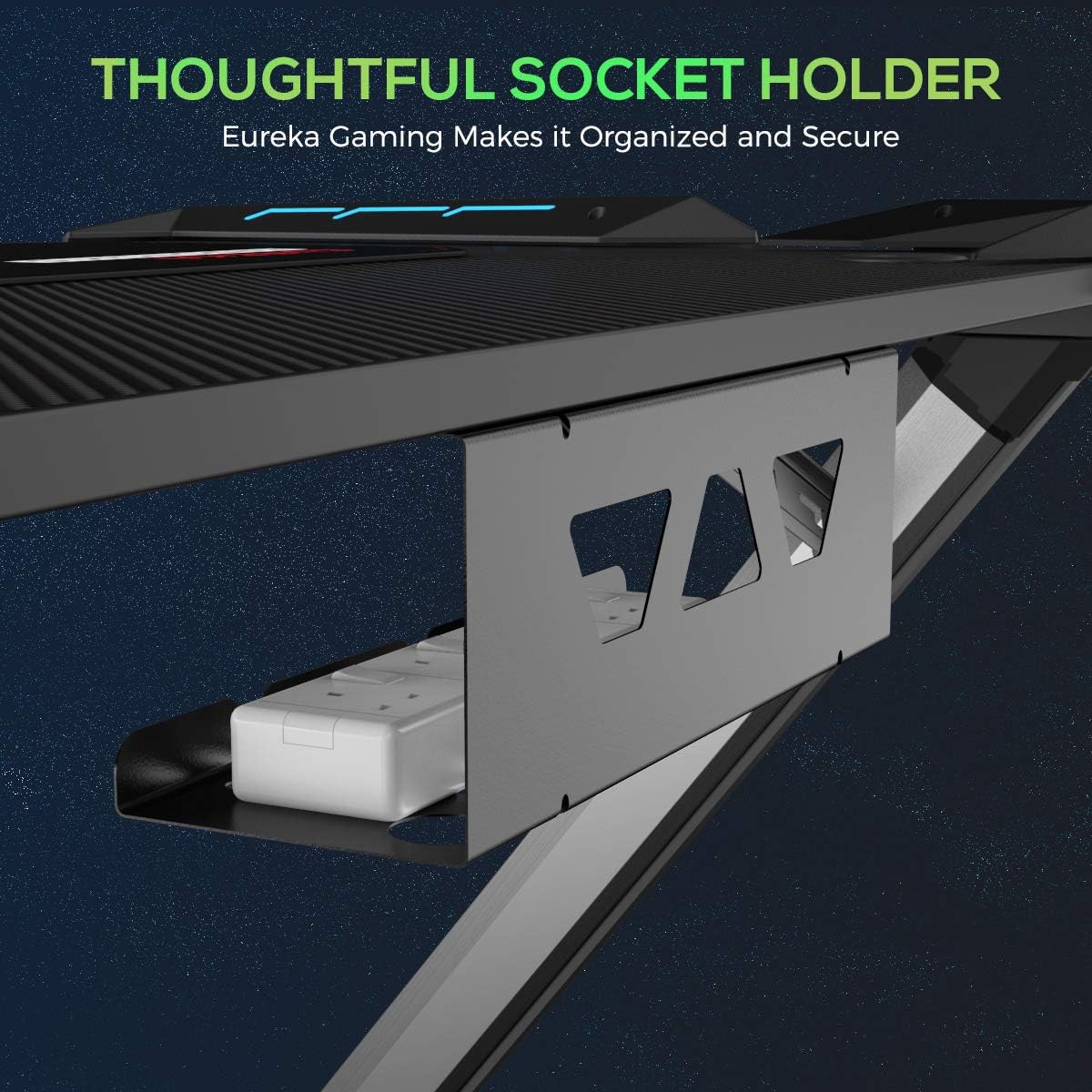 Eureka Colonel Series Z1-S Pro 43″ Silver gaming desk comes with a 43″ broad desktop, with plenty of space for gaming monitors, console, keyboard, and any other gear you may need. You can be sure you’ll have plenty of room to keep all of your gear handy.