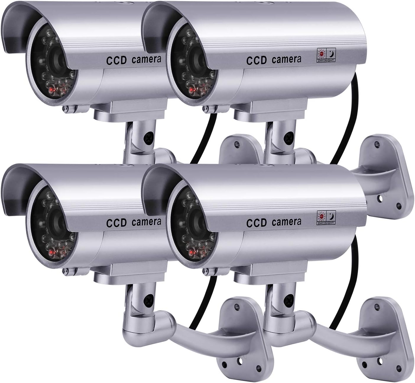 REALISTIC LOOKING APPEARANCE: This type of dummy security has a silver appearance comes with a LED red flashing light, a video line that looks real.