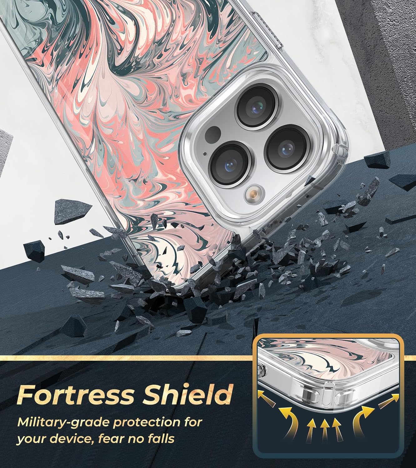 【Fortress Shield Protection】This case for iPhone 15 Pro Max combines a solid PC back panel with a soft TPU frame and an innovative four-corner airbag design, and has passed 8000+ times, 10FT military-grade certification. The perfect blend of elegant style and robust defense for your iPhone. Choose Juntone for sophisticated protection.