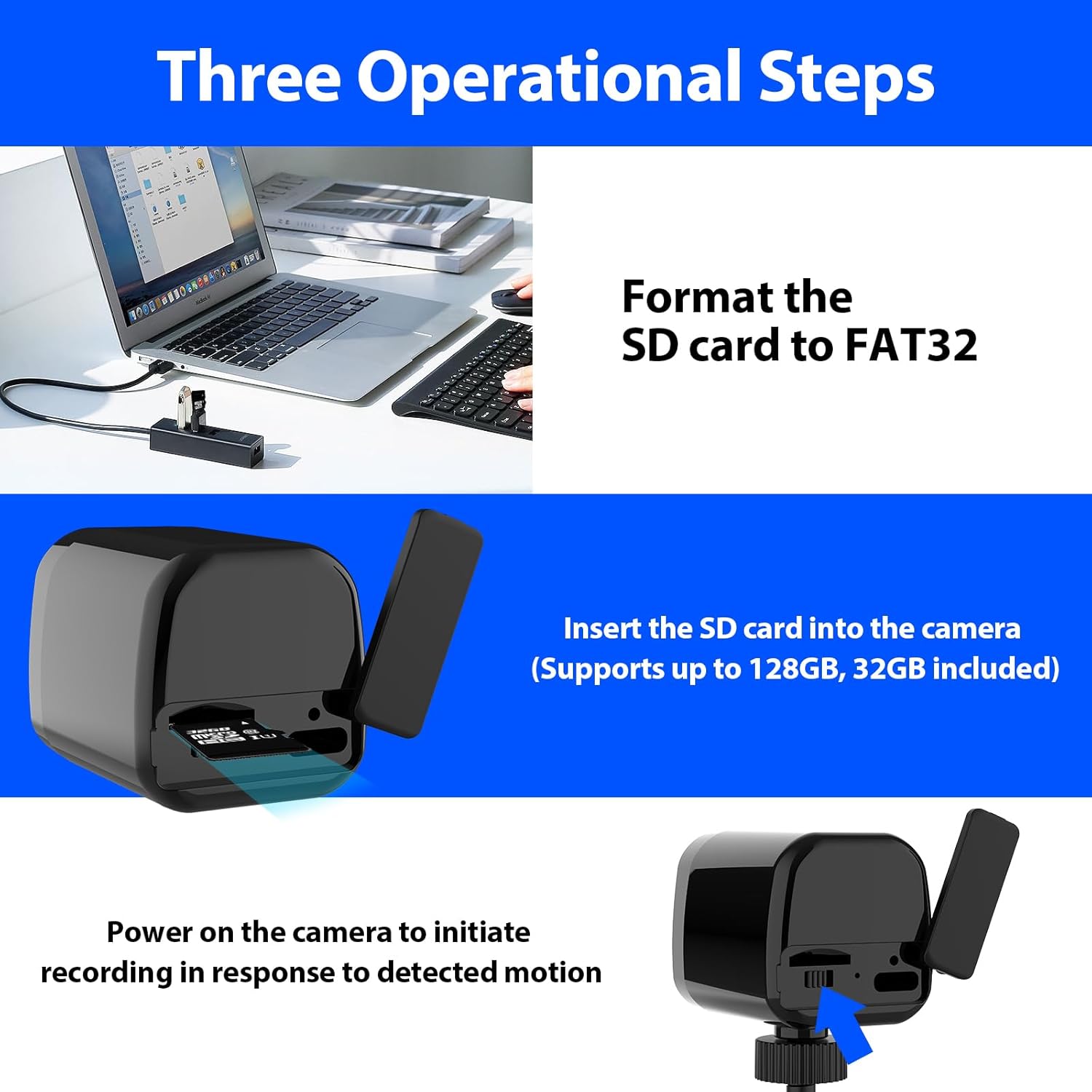 🔗 Seamless Security Experience:This micro camera security 1080P achieves wire-free convenience with a 100% cordless design, and enjoy high-definition small camera surveillance effortlessly. No messy wires or complex WiFi setups; just insert a micro SD card to the small camera, power on the small security camera, and experience crystal-clear 1080p UHD resolution of the little camera with smooth and reliable video recording at 25-30 frames per second.