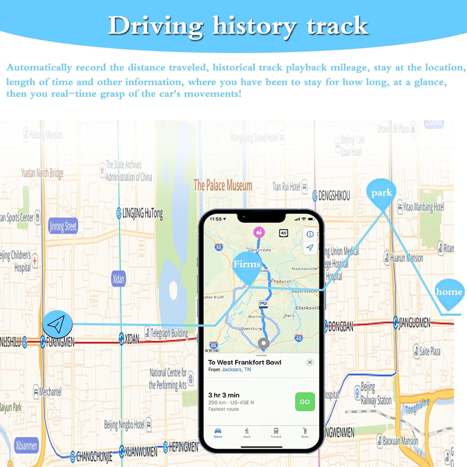 【History track】When your vehicle is stolen or the teenage driver is driving the car, you can check the history of the device’s stopping place, length of stay and driving track and so on, real-time mastery of the vehicle’s trajectory, to provide security for your vehicle assets, the elderly, children, pets and so on.