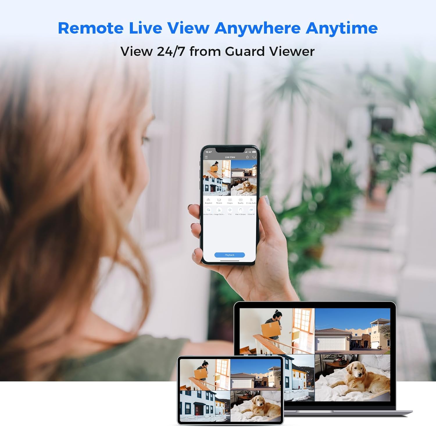 【1TB HDD+ 7/24/365 Record+ Smart Playback】This wired security camera system buit in 1TB hard drive,it can help customers record 20 days.Various Record Modes like Regular 7/24/365 Or Motion Detection Record.AI Algorithm Tech allow customer to select a certain period to playback the videos,and playback speed can be up to 256X.And customer could also choose the common playback or Smart playback(Person event and Vehicle event playback.