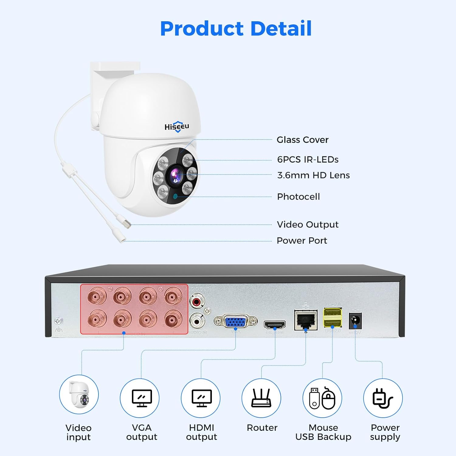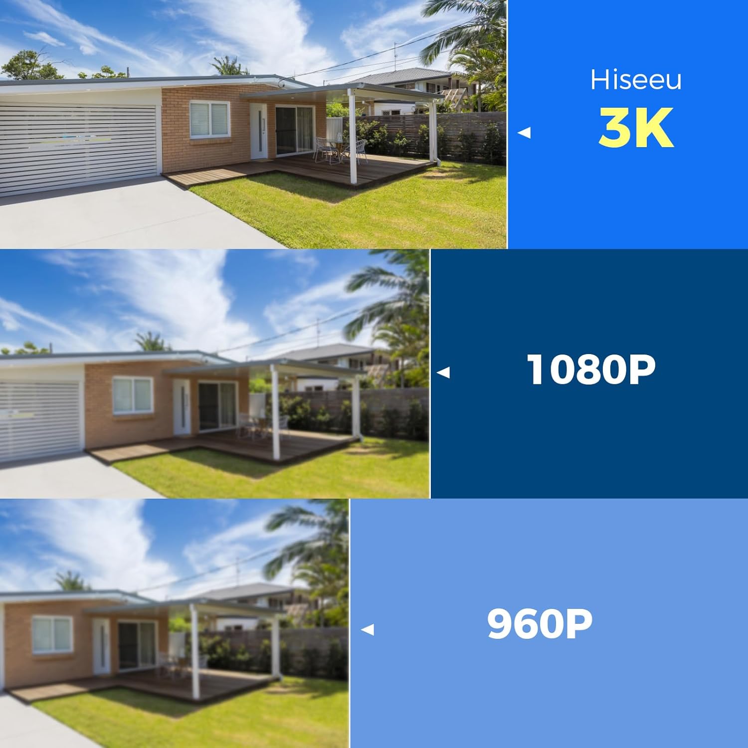 【HD 5MP Highest Resolution & Clear Night Vsion up to 100ft】Compared with most low Resolution 1080p/2MP,Hiseeu highest 5MP resolution would provide you a vivid and clear image,along with clear and crisp night vision up to 100 ft with Infrared LED Lights inside of the camera’s automatic IR-cut filter.