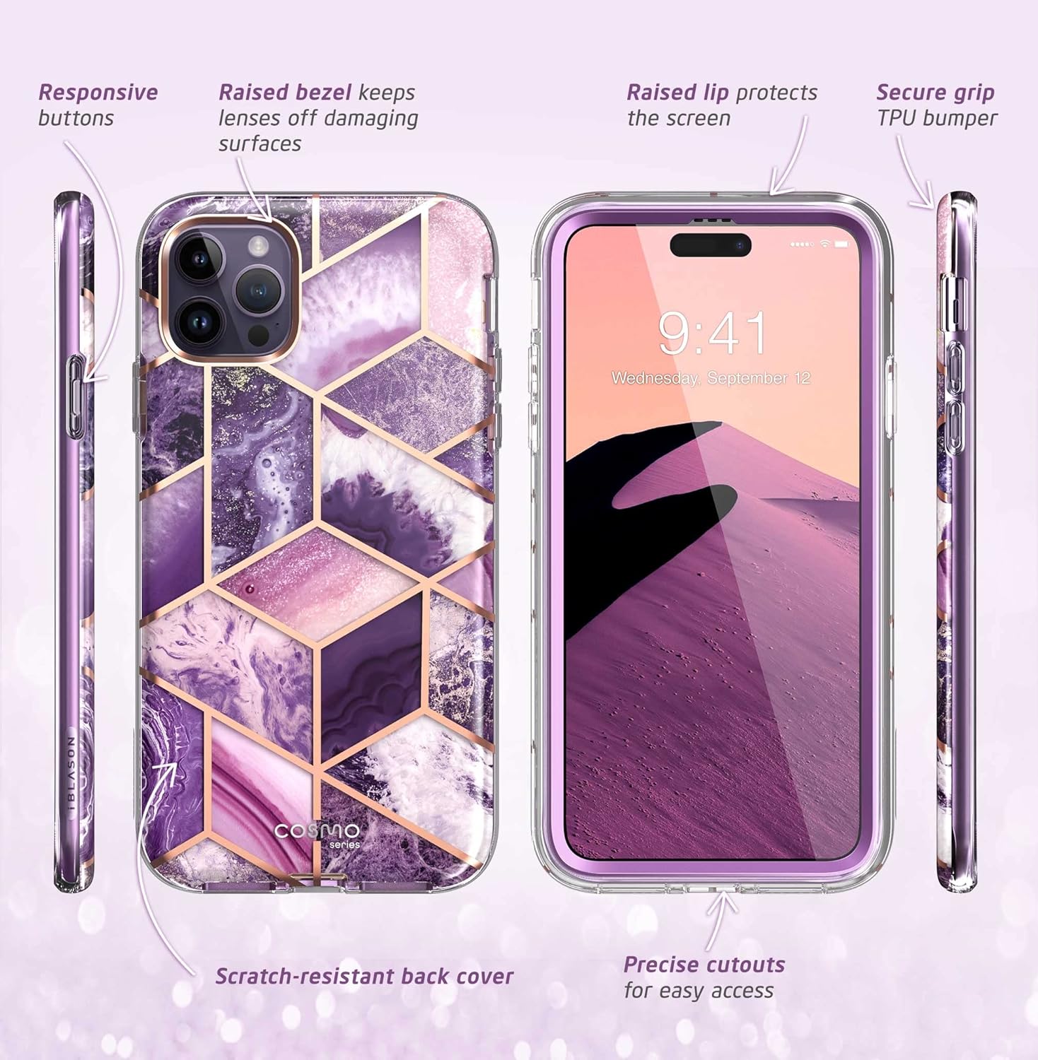 iPhone 14 Pro case includes a touch sensitive built-in screen protector as front cover that helps prevent scratches and cracks.