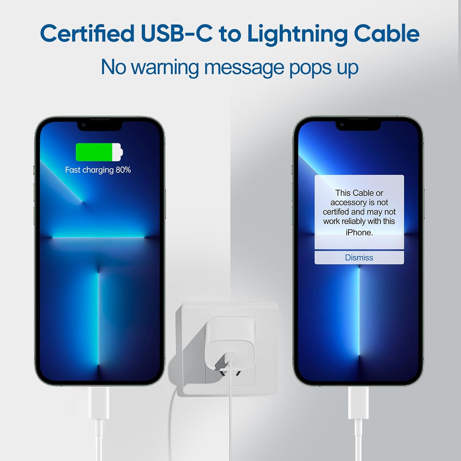 【Superior Safety Fast Charging】20W lightning charger provide intelligent circuit design to keeps your iPhone be safe from over-current over-voltage over-heating , short-circuiting, exhaustive protection while charging.