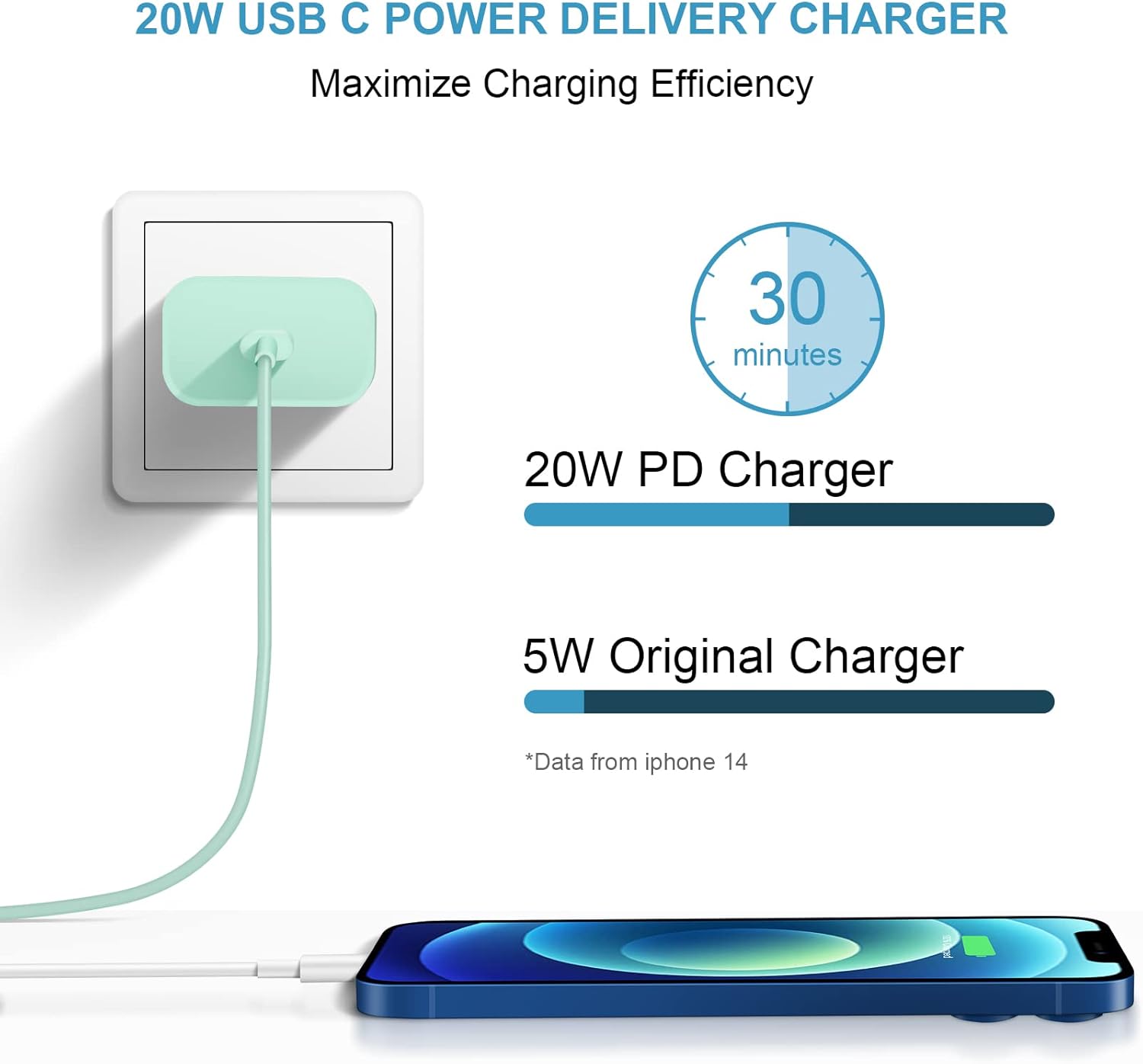 Compared with 5W original charger, this 20W PD fast charger for Phone could save more than 1 hour for you!