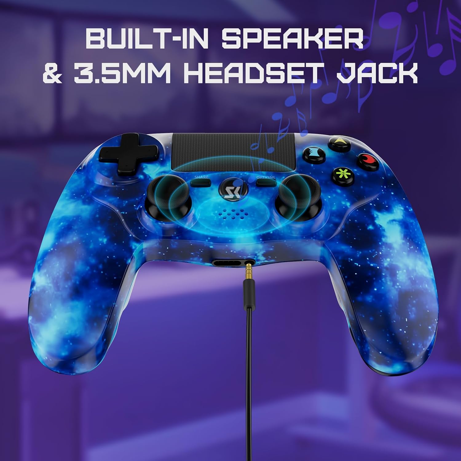 【Built-in Speaker & 3.5mm Headset Jack】You don’t have to worry about disturbing others because the PC controller offers two ways to enjoy high-quality sound—either through the built-in speaker or the 3.5mm headset jack. Besides, the package includes two sets of thumb caps. Regardless, it makes for a perfect gift for your family or friends during Christmas or birthdays.