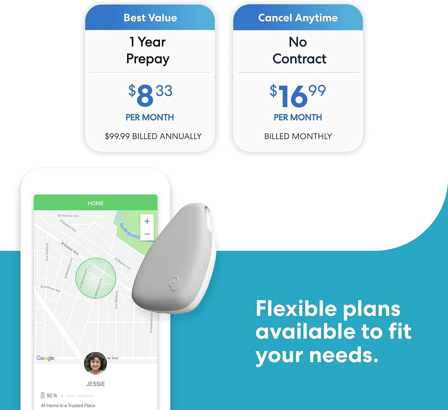 Jiobit Subscription Plan: The Jiobit tracker requires a subscription data plan to stay connected. During activation in the free Jiobit app, choose between monthly and annual plans. No additional SIM or cellular plan needed. Compatible with Android and Apple devices.