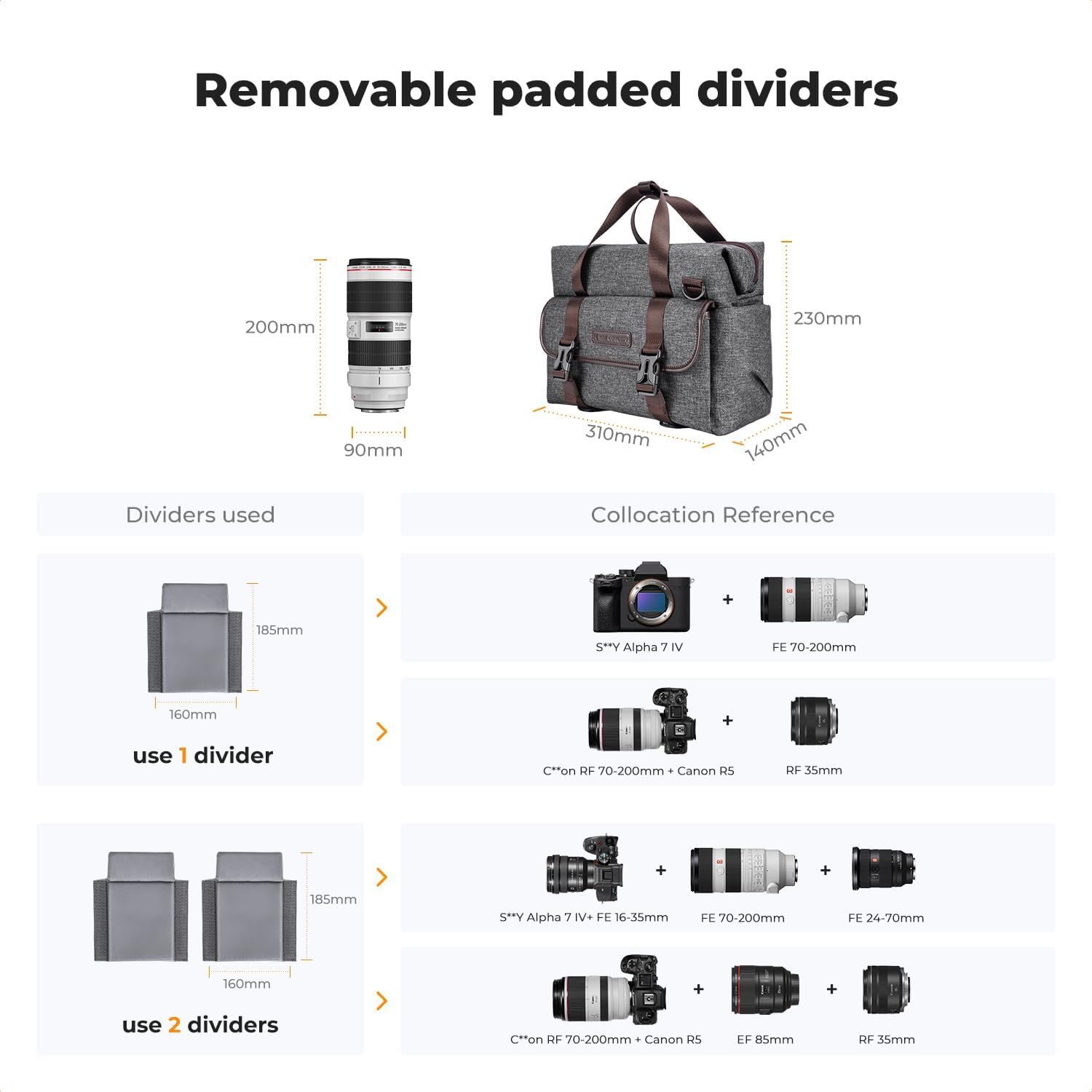 【Camera Protective】Thickened outer walls and removable inner dividers can stabilize your gear and protect it from shock and strike. This dslr camera bag is lightweight and portable suitable for street photography,outdoor travel, commuting or short trip.