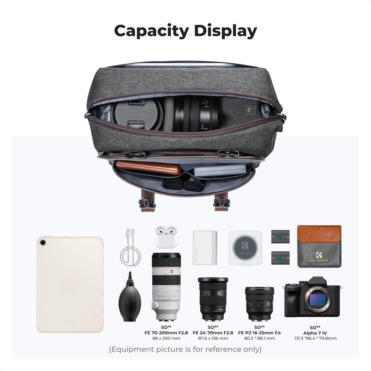 【Dimensions】External Size:12.2*5.1*9.06 inch; Internal Size:11*4.9*7.87in. The camera sling bag main compartment for 1 DSLR/SLR/Mirrorless, 1-2 exchange lenses and other photography accessories.