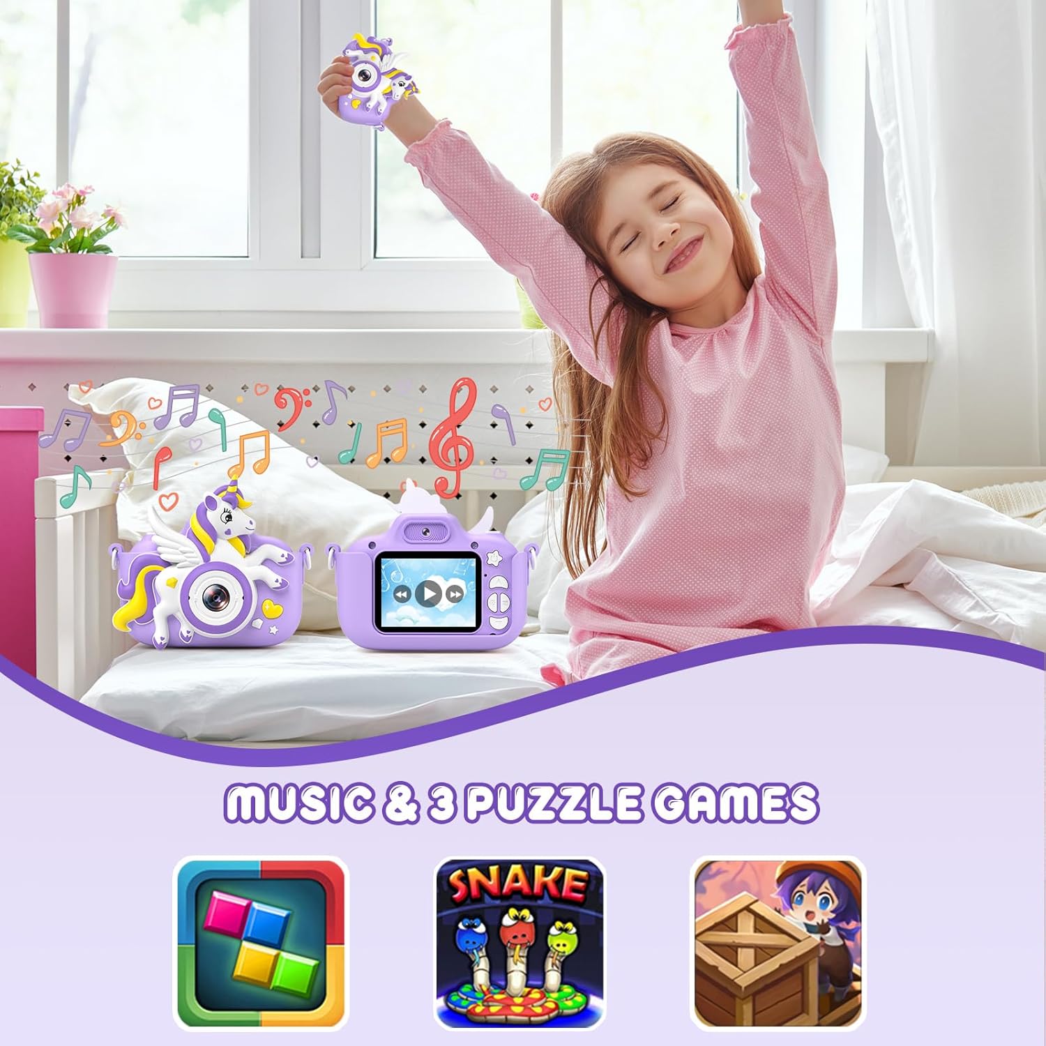 【Great Gifts for girls】: Designed for children aged 3-12, this delightful camera encourages young girls to embark on exciting adventures. Whether it’s Children’s Day, Christmas, or a birthday celebration, this gift sparks their natural curiosity about the world around them. With this children’s camera, girls can document their surroundings, creating lasting memories. The joy of snapping photos fosters creativity and self-expression. Plus, it’s a fun way to learn about composition, colors, and storytelling. Beyond just taking pictures, this camera engages girls in interactive learning.