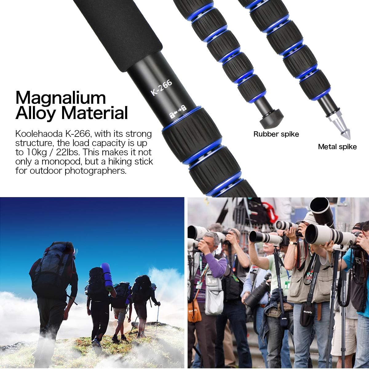 koolehaoda K-266, with its strong structure, the load capacity is up to 10kg / 22lbs. This makes it not only a monopod, but a hiking stick for outdoor photographers. 6-section extendable design, easy to carry and store.Folding size is only 38CM