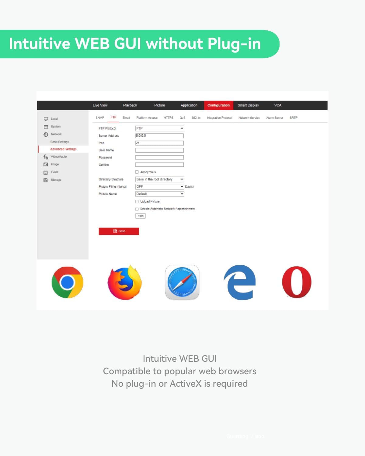 EASY REMOTE ACCESS – Comes with intuitive WEB GUI, compatible to Chrome/Safari/IE/Edge and no plug-in or ActiveX is required; Free mobile App with Cloud access; Also provide PC based VMS software to centralized manage tens of cameras from different sites. Offer API for 3rd party access.