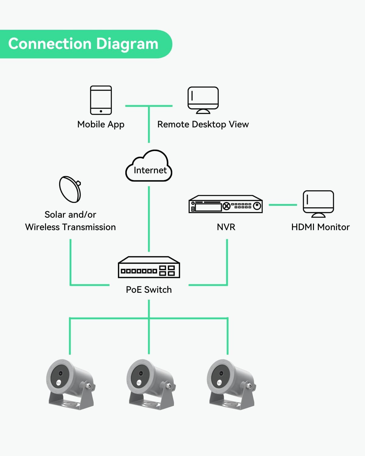 4K ULTRA HD UNDERWATER INSPECTION – Presenting 8 Megapixels (3840×2160) vivid video wth 4x more details than regular HD camera; wide view angle; Efficient bandwidth control with the advanced H.265 compression; Supports Power Over Ethernet network and comes with 4 port POE Switch, simplified installation and wiring.