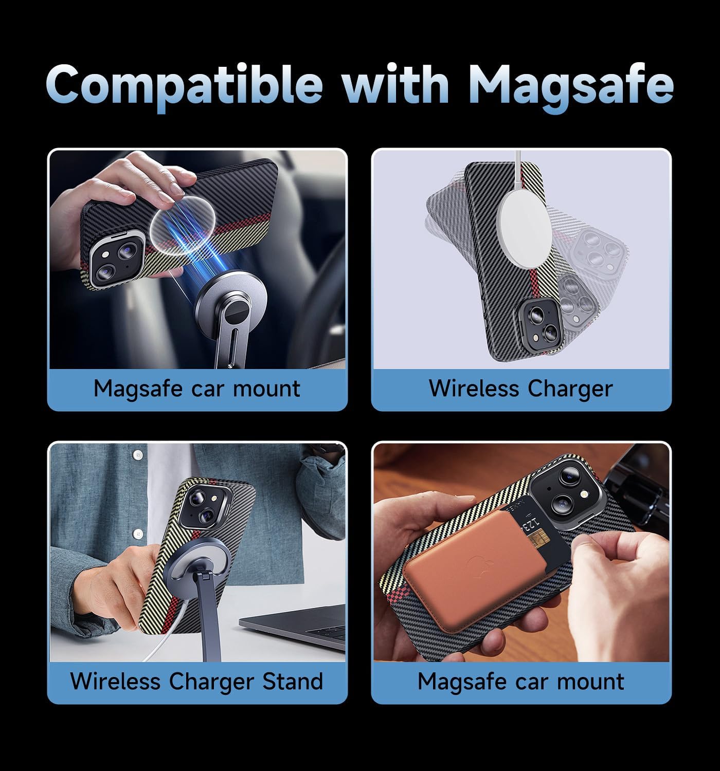 [Stronger Magnetic] Designed for iPhone 13 Case/iPhone 14, the magnetic ring can strengthen the magnetic connection to be compatible with most MagSafe accessories such as wireless charger, magnetic car mount, magnetic battery bank, magnetic wallet and so on. The perfectly aligned magnetic attraction makes wireless charging faster and more stable.