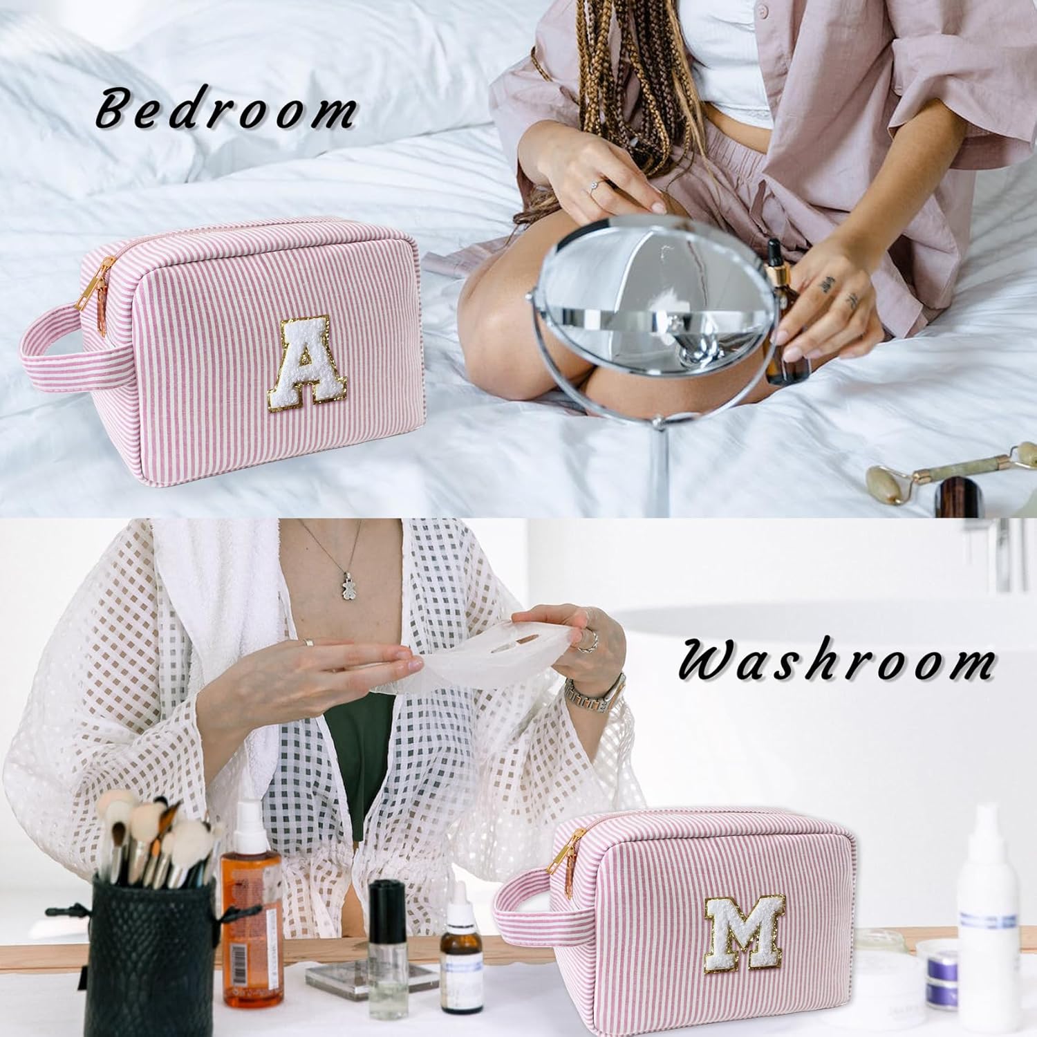 ❀[Special Design]:Look it unique appearance,Pink not only brings youthful vitality, but also makes you and others happier,which will surprised them.The design of seersucker is not only beautiful, but also convenient to use,The cotton material is more comfortable to touch, lighter, and convenient to carry,The metal zipper can quickly open the makeup bag.