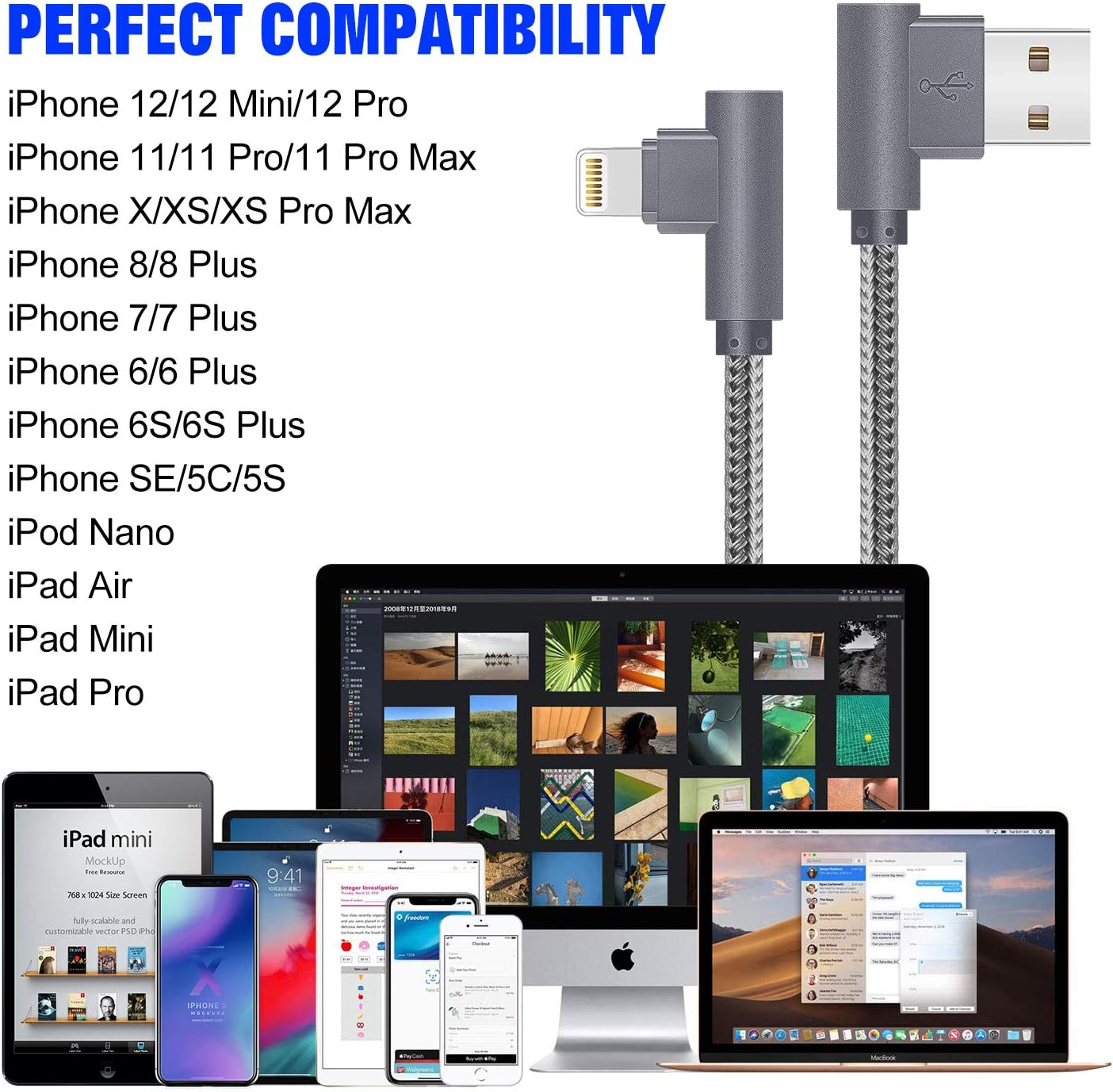 2021 Latest L-Shaped Design. The data cable will not press your hand, let you experience your comfortable feel, reduce the pressure on the finger!cable very comfortable to use! 90 Degree connectors resist heat and corrosion, nylon braided up to 5X durable than original device cables.