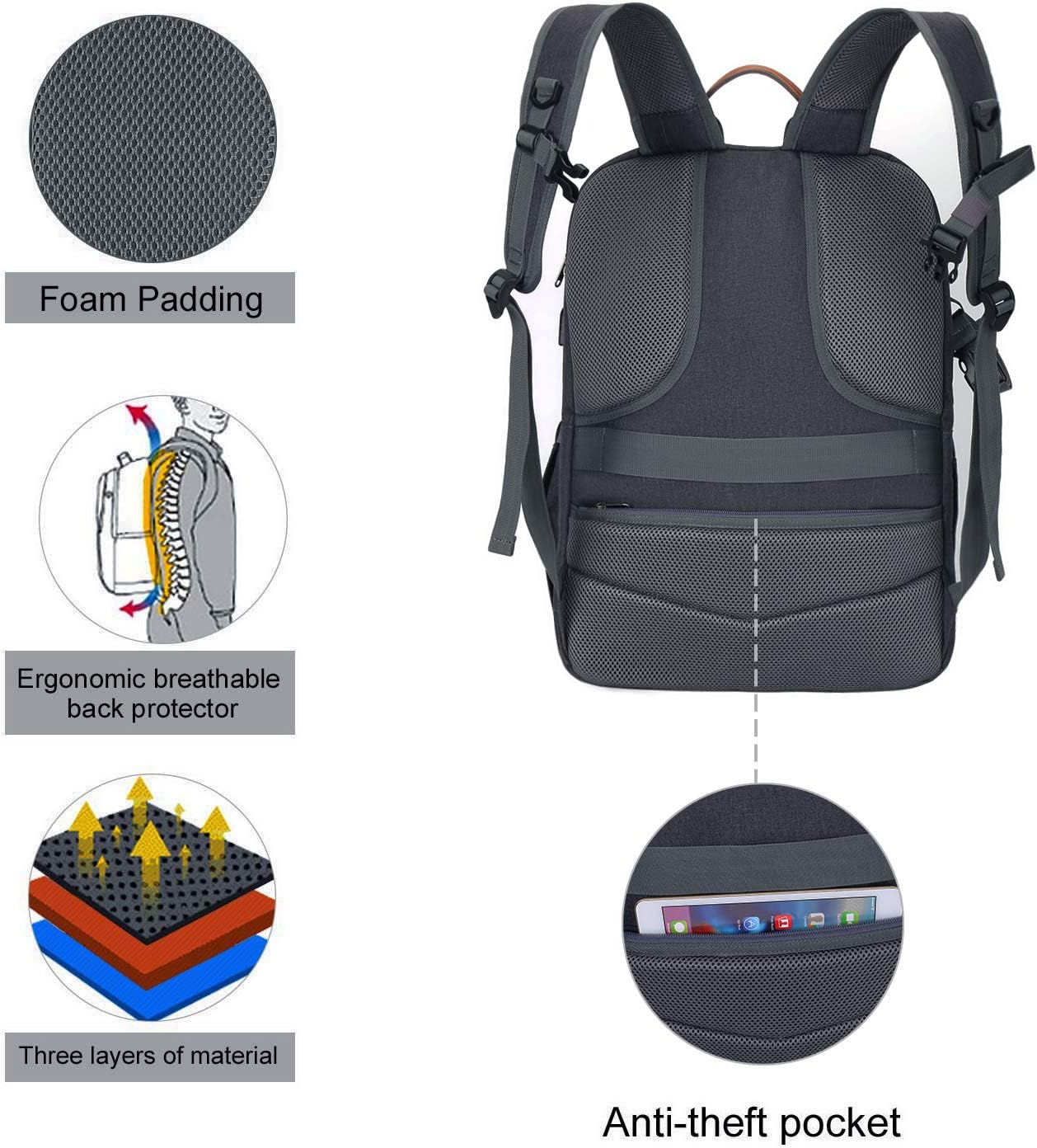 2 side pockets for monopod/tripod holder, water bottle or umbrella; 1 hidden anti-theft zippered pocket on the back for your precious items and other frequently used stuff. Multifunctional pockets are featured for your SD cards, phone, wallet and other necessary needs for outgoing. An external USB-charging port with one cable makes it more convenient to charge phones and other devices without openning the bag.