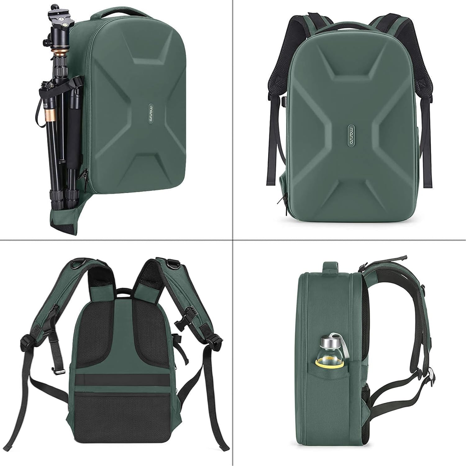 Full open design. 2 accessory pockets on the back face can store cables, sd cards, powerbank and other small items. Tripod/monopod holder is featured with 1 secure strap on one bag side. 1 pocket on another side can store umbrella or water bottle(up to maximum 2.5 diameter). 1 anti-theft pocket is designed on the back for your wallet, cellphone and precious items.