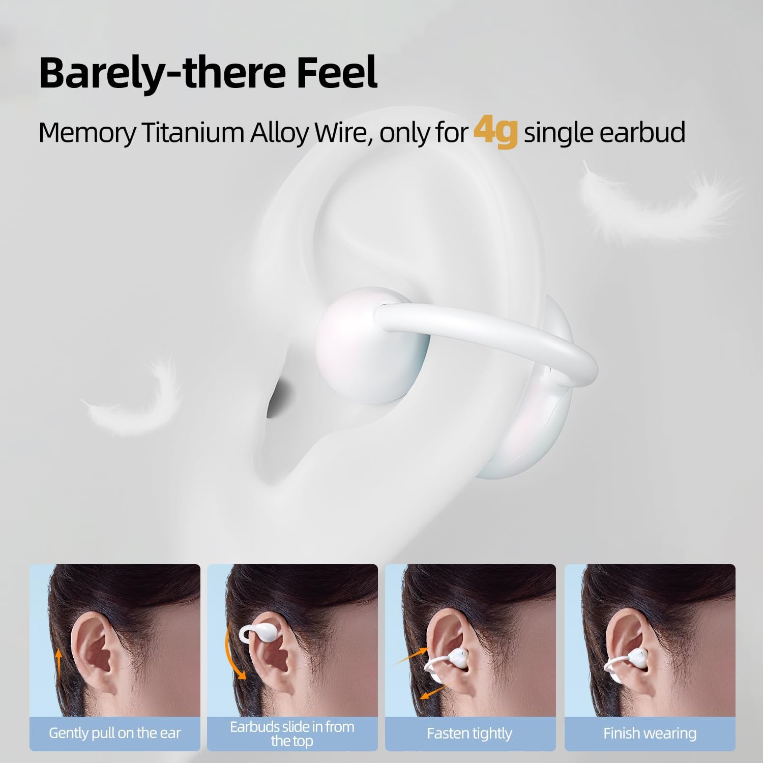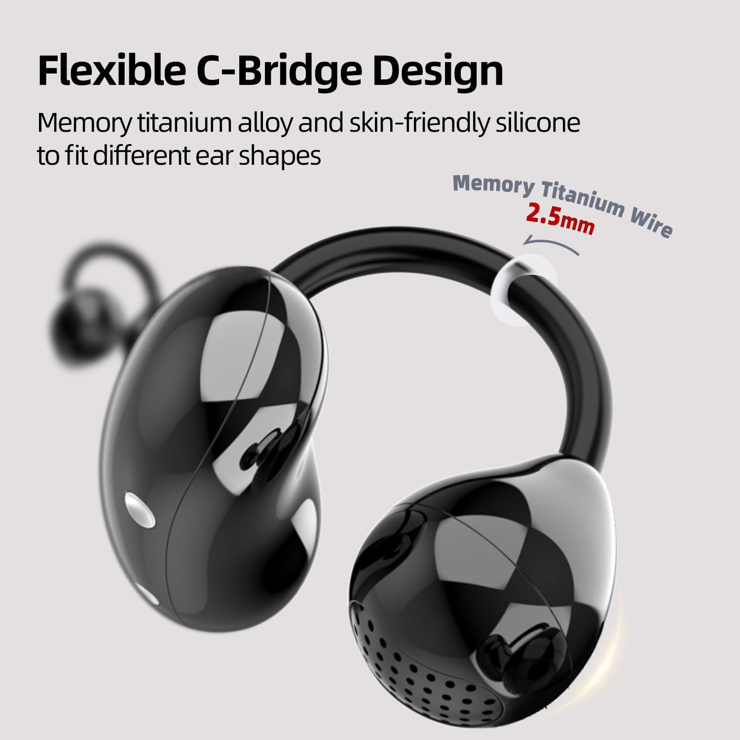 Feather-Light Comfort: Weighing only 4 grams per bluetooth headphone, these earphones wireless bluetooth feature a 2.5 mm titanium C-shaped bridge and a 3D ergonomic design that fits any ear shape. Whether it’s a 10 hours workday or an intense workout, these wireless bluetooth headphones won’t slip, won’t get sore, and are only as light as a feather
