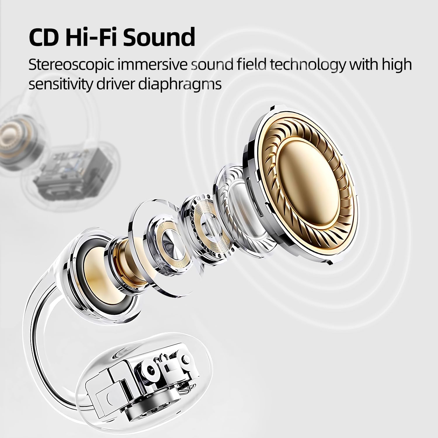 Immersive Audio Experience: Enjoy CD-quality sound with wireless earbuds, engineered with dual high-sensitivity drivers and stereo soundstage technology. Ideal for audiophiles demanding lossless clarity—every note, from classical melodies to bass-heavy beats, stays true to the original recording