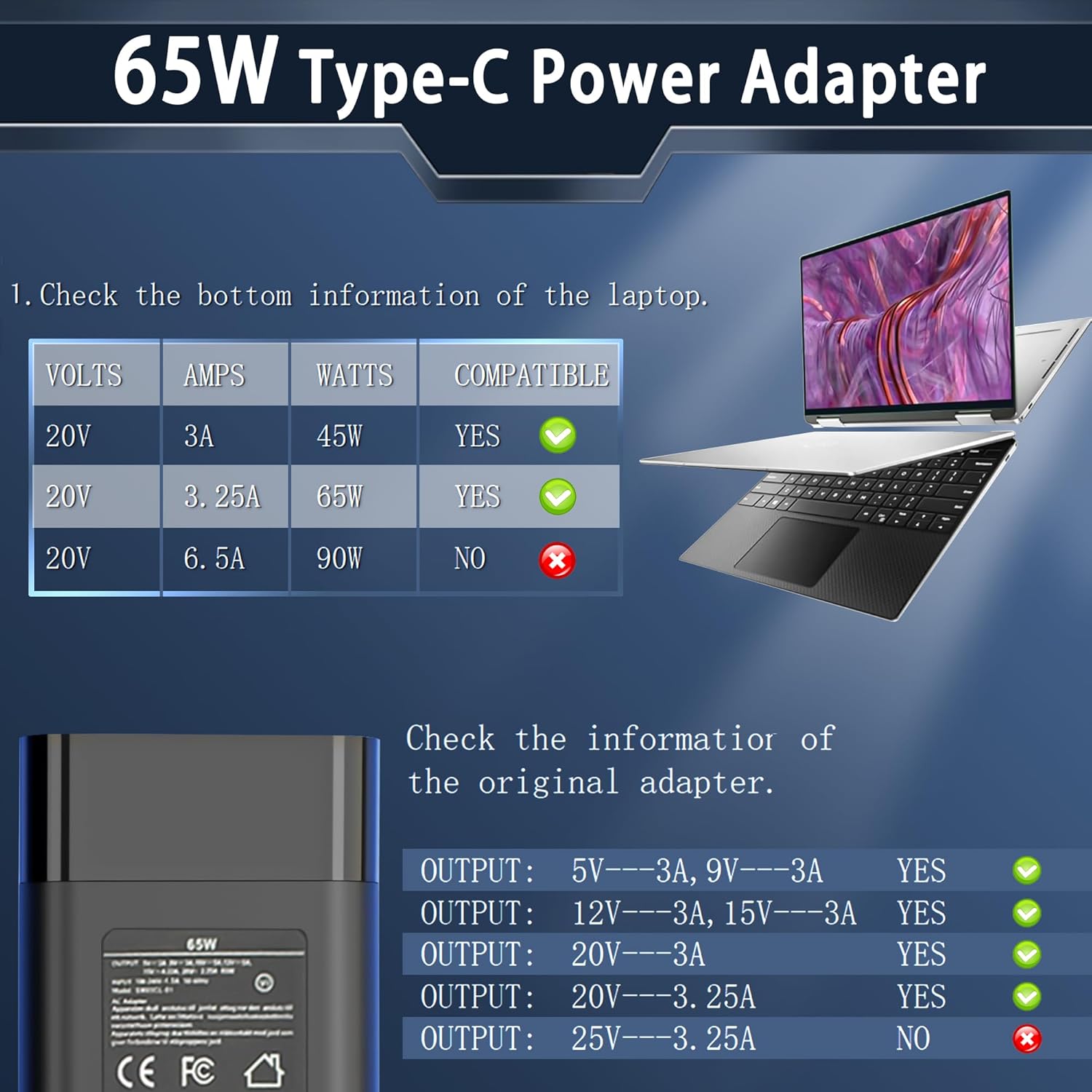 65W USB C Power Adapter Compatible for HP Spectre X2 X360 13 Series: 12-A000 12-AB000 13-C000:12-a001tu 12-a001cy 12-a001dx 12-a009nr 12-ab010nr 12-a008nr 12-c012dx 12-c052nr 12-c053nr 13-AC000 13-AE000 13-AF000 13-ac023dx 13-ac033dx 13-ac013dx 13-ac063dx 13-ae011dx 13-ae010ca 13-ae012dx 13-ae013dx