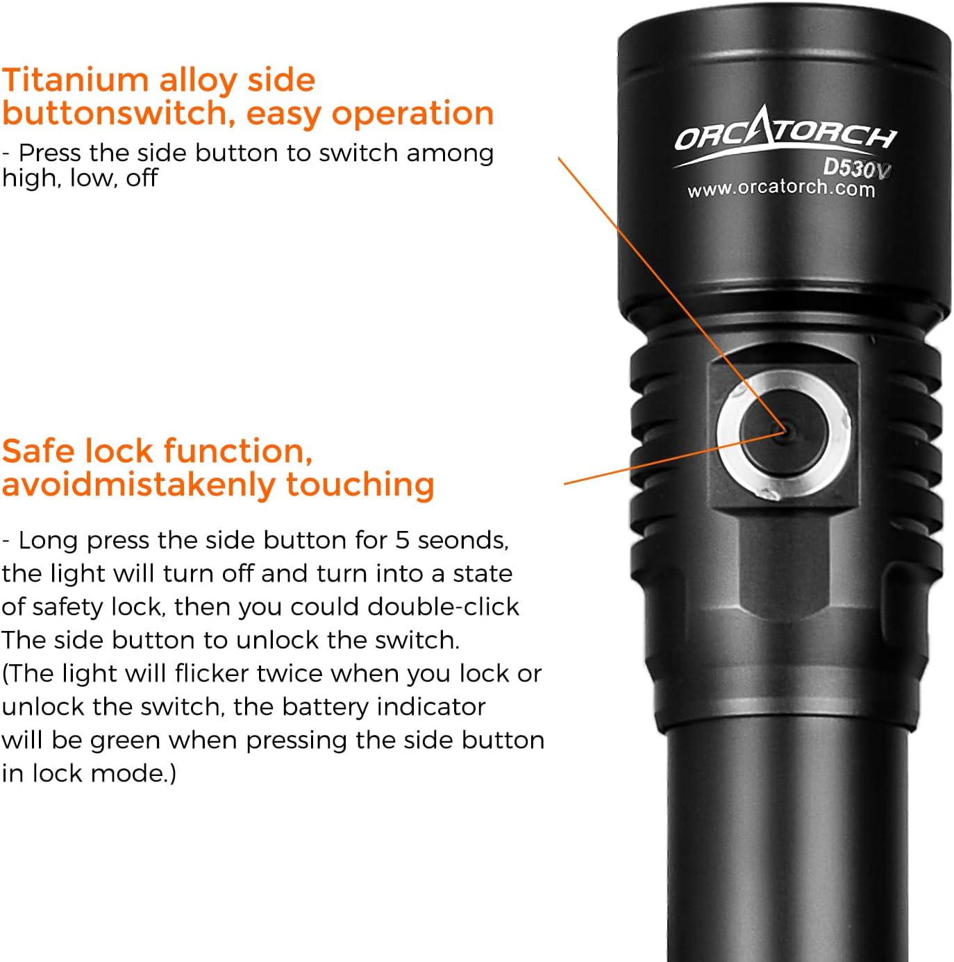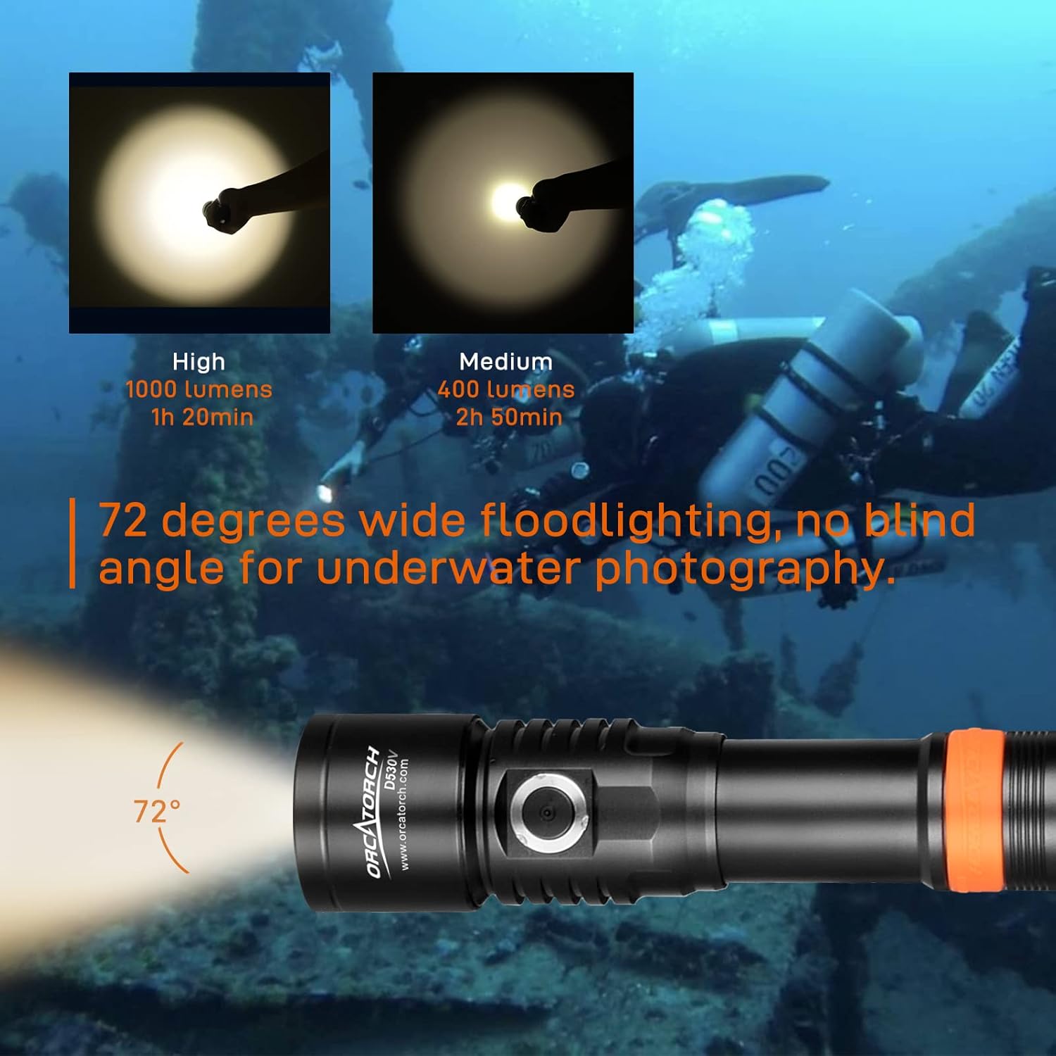 Equipped with OrcaTorch ZJ18 Ball Joint Bracket: packed along with diving ball joint bracket which make the D530V is suitable for underwater photography and supplementary lighting. Ball head can be mounted on the dive light or underwater sports camera. It has 360 degrees rotating fixed connection, then you have more freedom to adjust the direction of the diving video light.