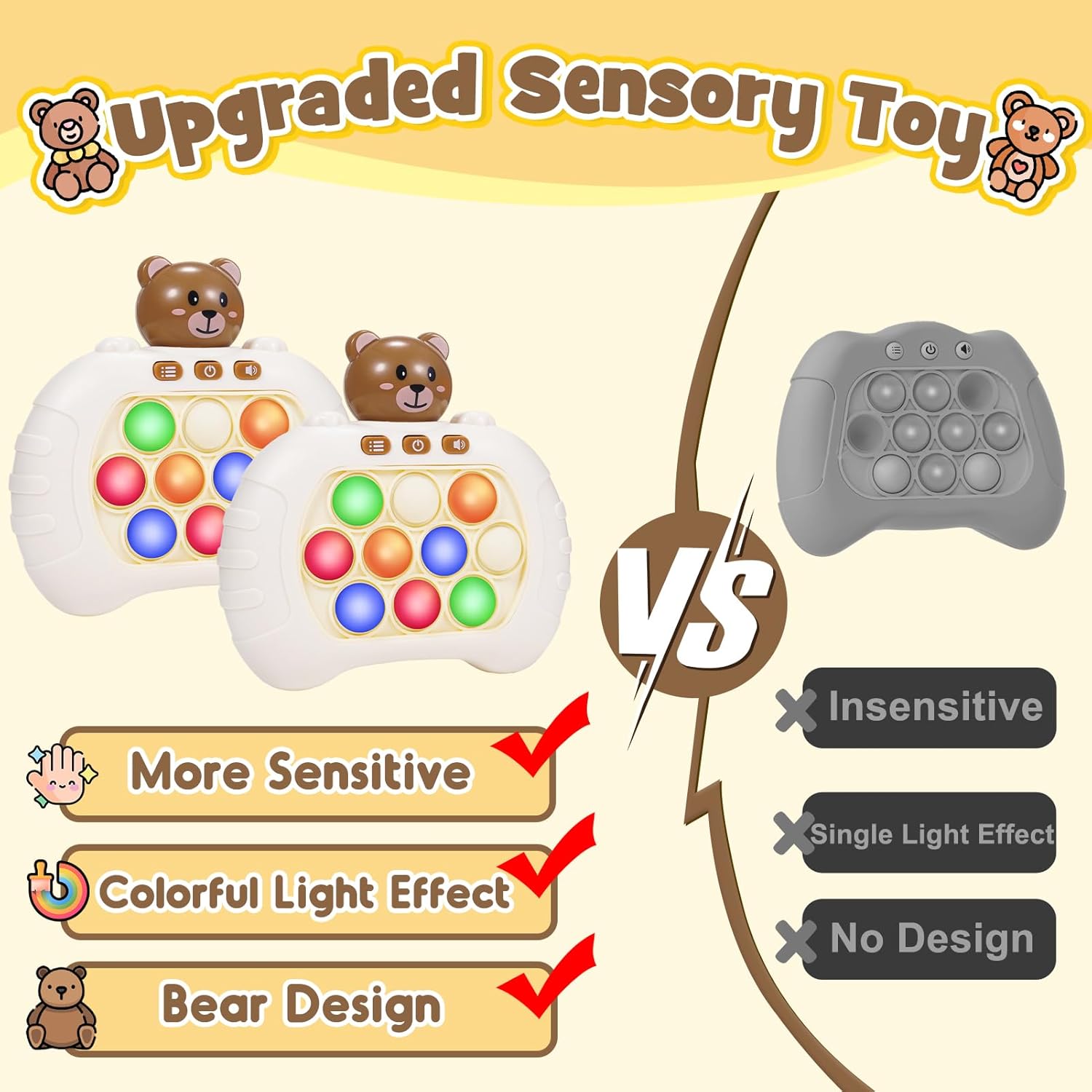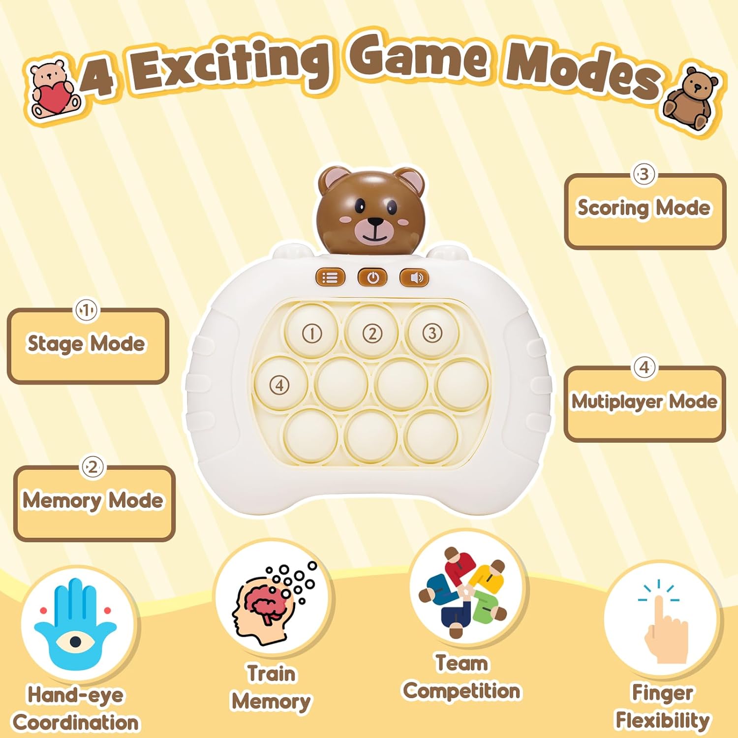Play Anytime & Anywhere: The compact and portable design of our fidget game allows for easy indoor and outdoor gaming, including during travel. With music and vivid sound effects, children can play for hours and stay entertained away from screens