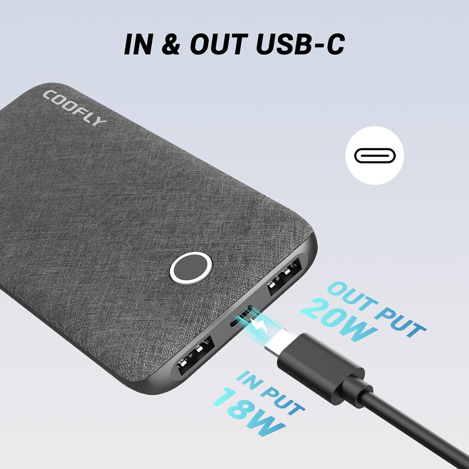 【20W Fast Re-charging】COOFLY P176D portable charger power bank supports 20W PD high-speed USB C output, get iPhone 15 up to 50% charge in just about 30min.Back you up at last minute hurry.
