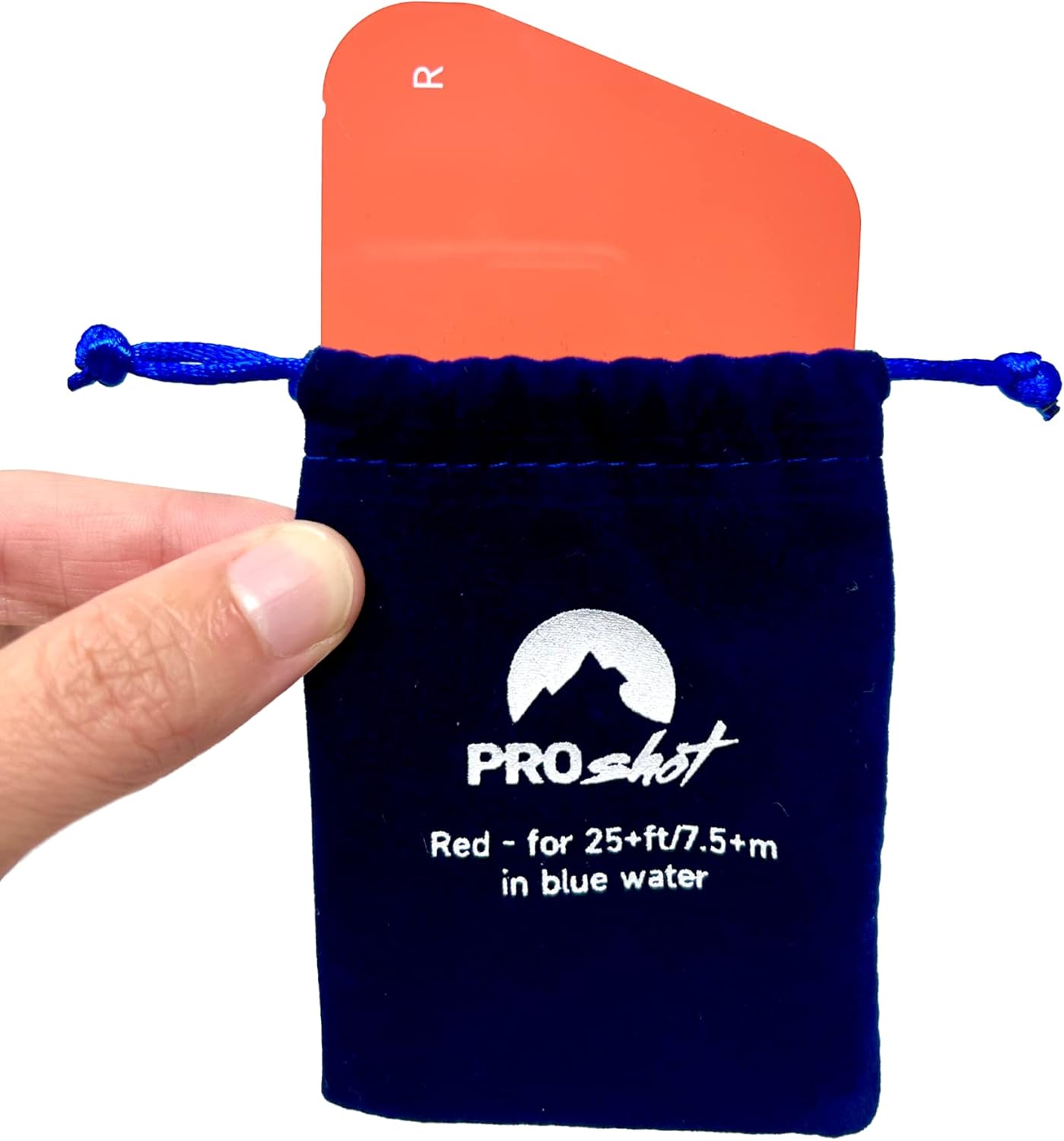 ✅ FEATURES: Red Filter 3 Pack comes with three custom-sized, red-shaded filters to be used with the ProShot Dive Case. RED filter for diving 25+ feet / 7.5+ meters in blue water. MAGENTA filter for diving 25+ feet / 7.5+ meters in green water. PINK filter for snorkeling.