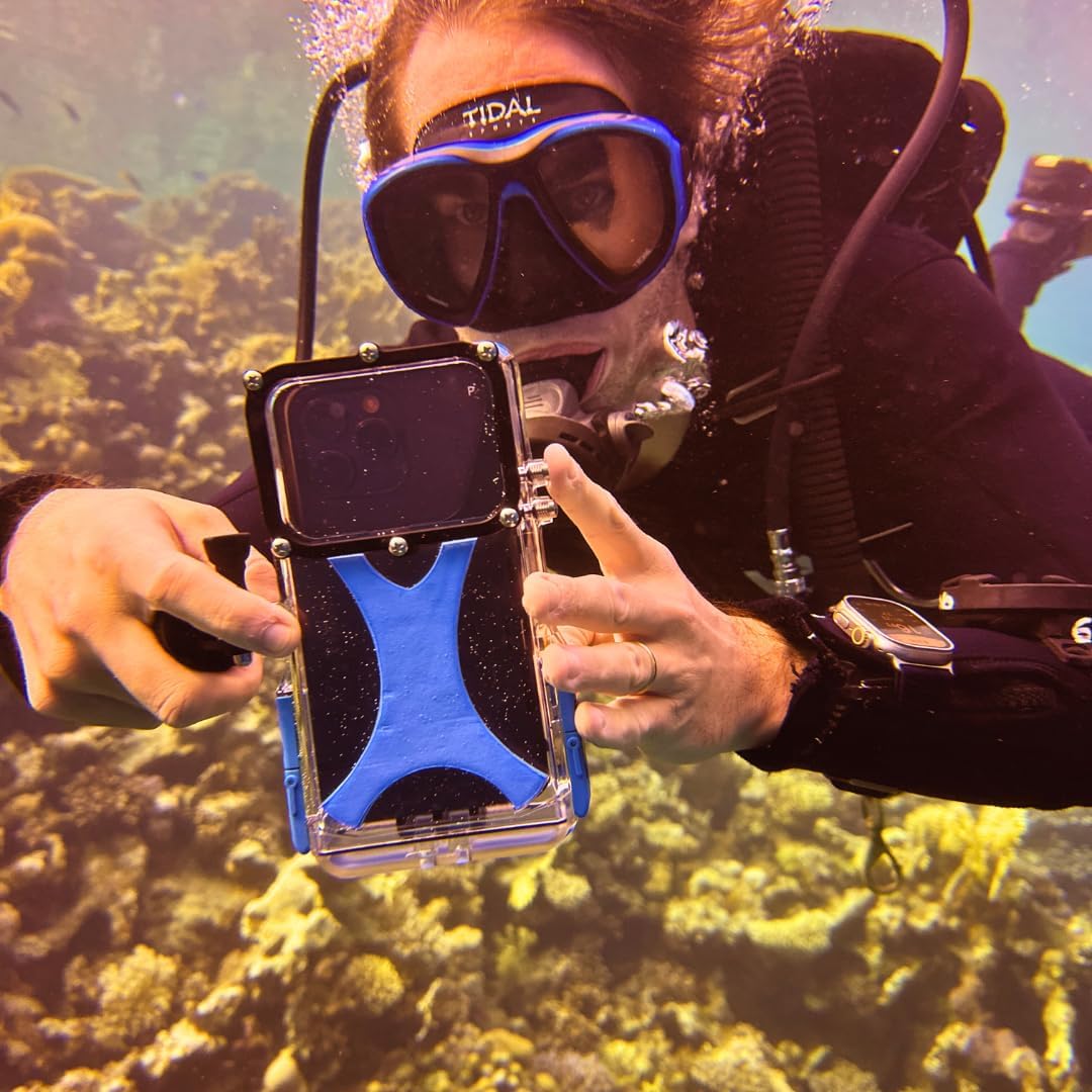 Our red colored filter works best to enhance your underwater footage when diving below 25+ feet/7.5+ meters in blue water. Blue water is referring to diving in salt water, like the ocean.
