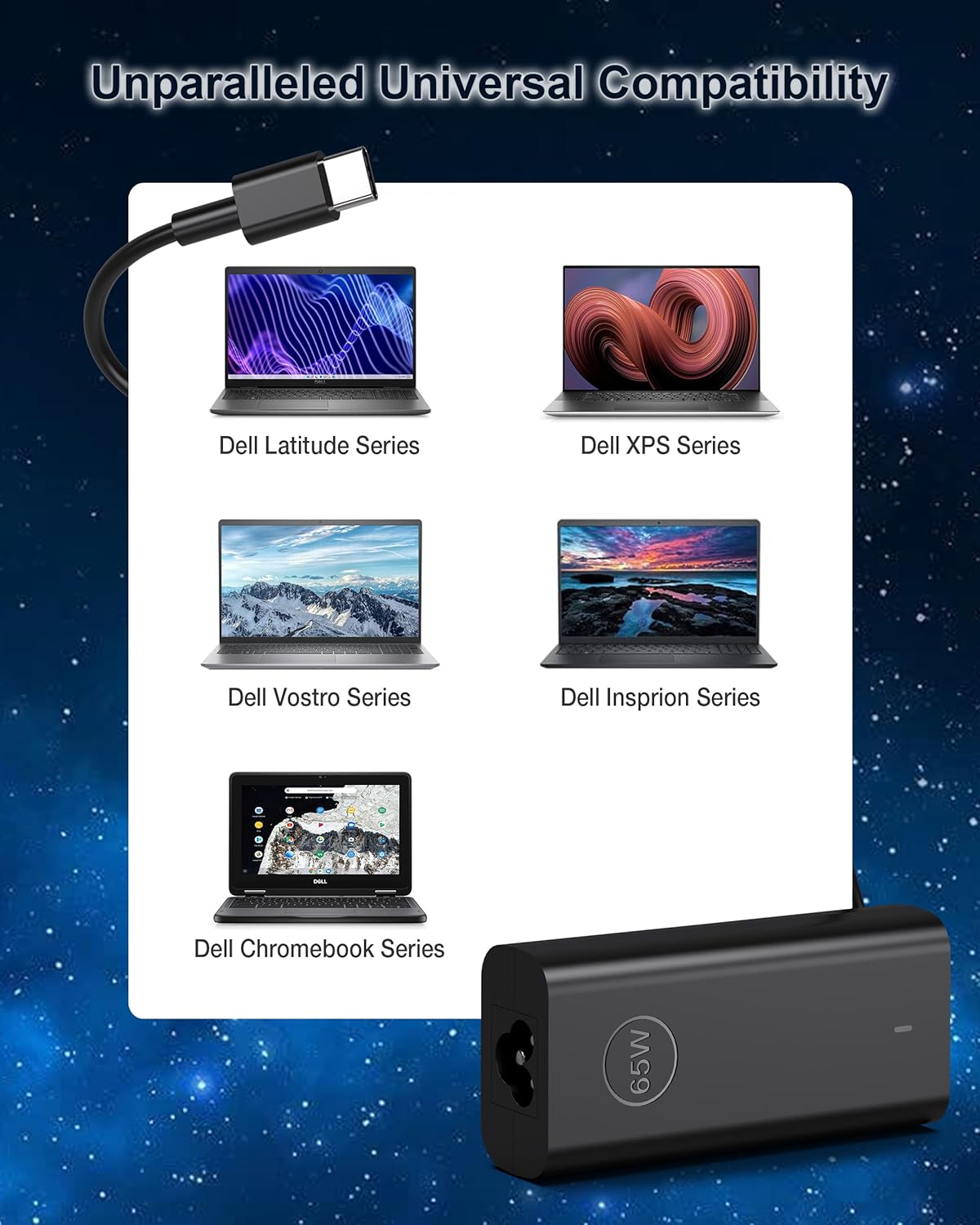 【Compatibility】 Compatibility with ALL Dell USB-C laptops (20V 3.25A 65W, USB-C connector), fit for Dell Latitude Inspiron XPS Chromebook Laptops with USB-C power connector.