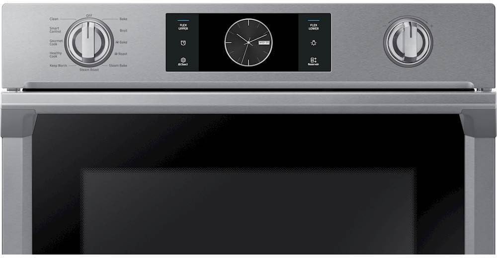 The Samsung Single Wall Oven has steam cooking so you can bake and roast with professional results. Steam Cook delivers moisture at precise times for a crisp, browned outside, and tender inside. Enjoy the comfort of Analog-Knobs combined with the advanced technology of a touch controlled digital display. The removable Smart Divider splits one oven into 2, creating 2 independent temperature controls to cook multiple dishes simultaneously.