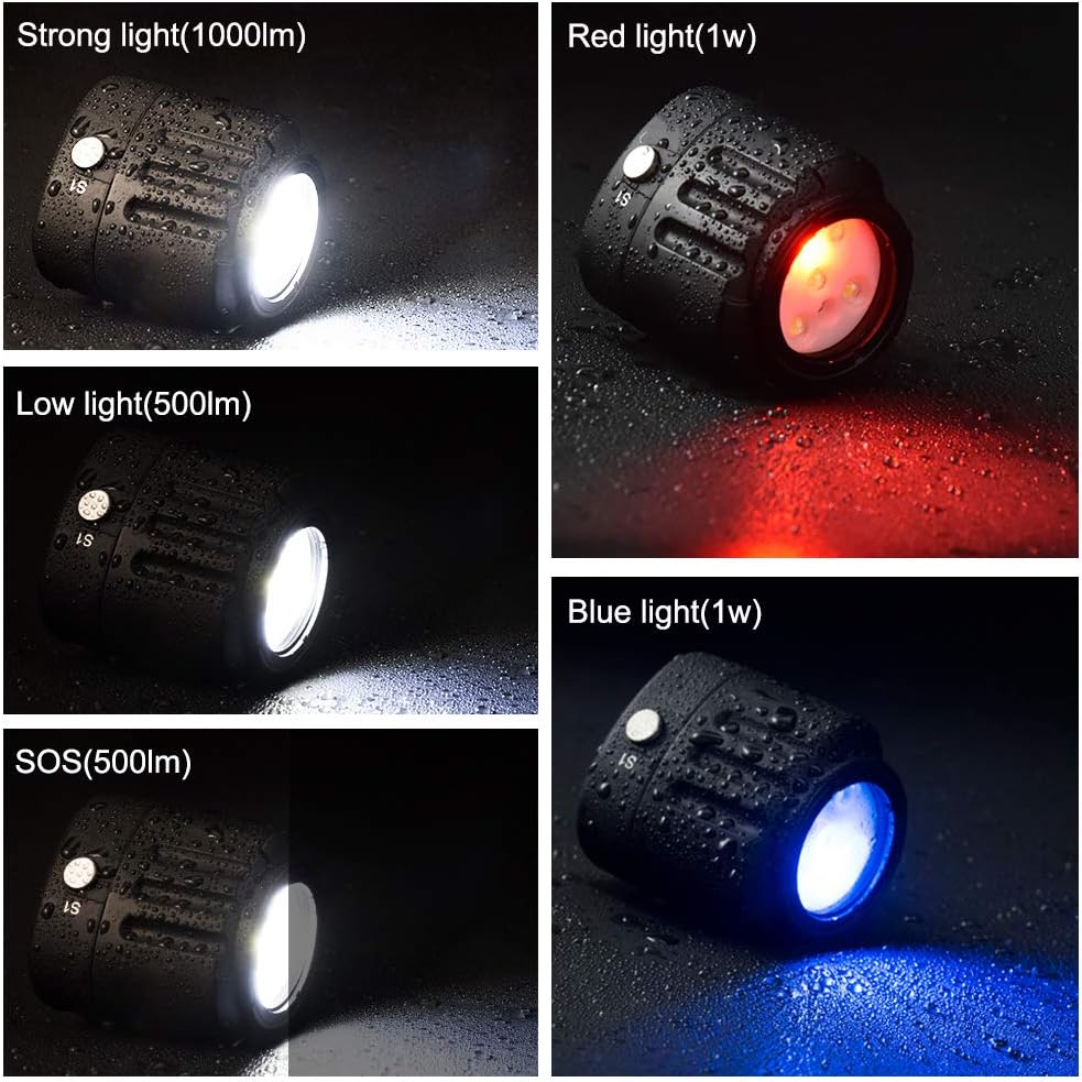【Lighting Modes】:3 colors(white, red, blue) of light meet different needs of filling light. S1 white light: high-low-flash-light off and cycle switching; S2 double color light: red light-blue light-light off and cycle switching.