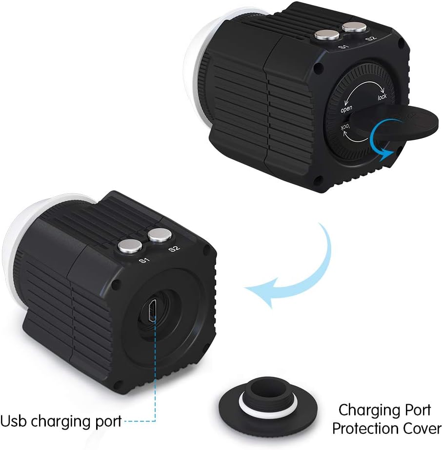 【Lighting Modes】:3 colors(white, red, blue) of light meet different needs of filling light. S1 white light: high-low-flash-light off and cycle switching; S2 double color light: red light-blue light-light off and cycle switching.