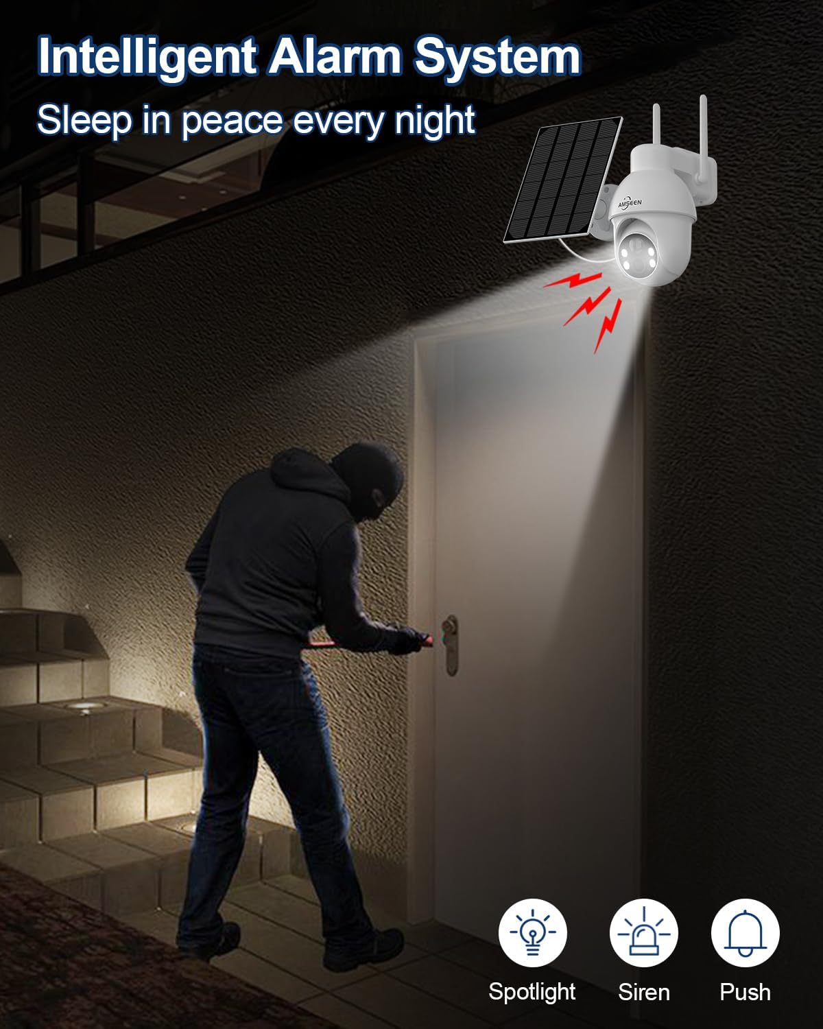 AMSEEN 100% Solar Powered Security Camera