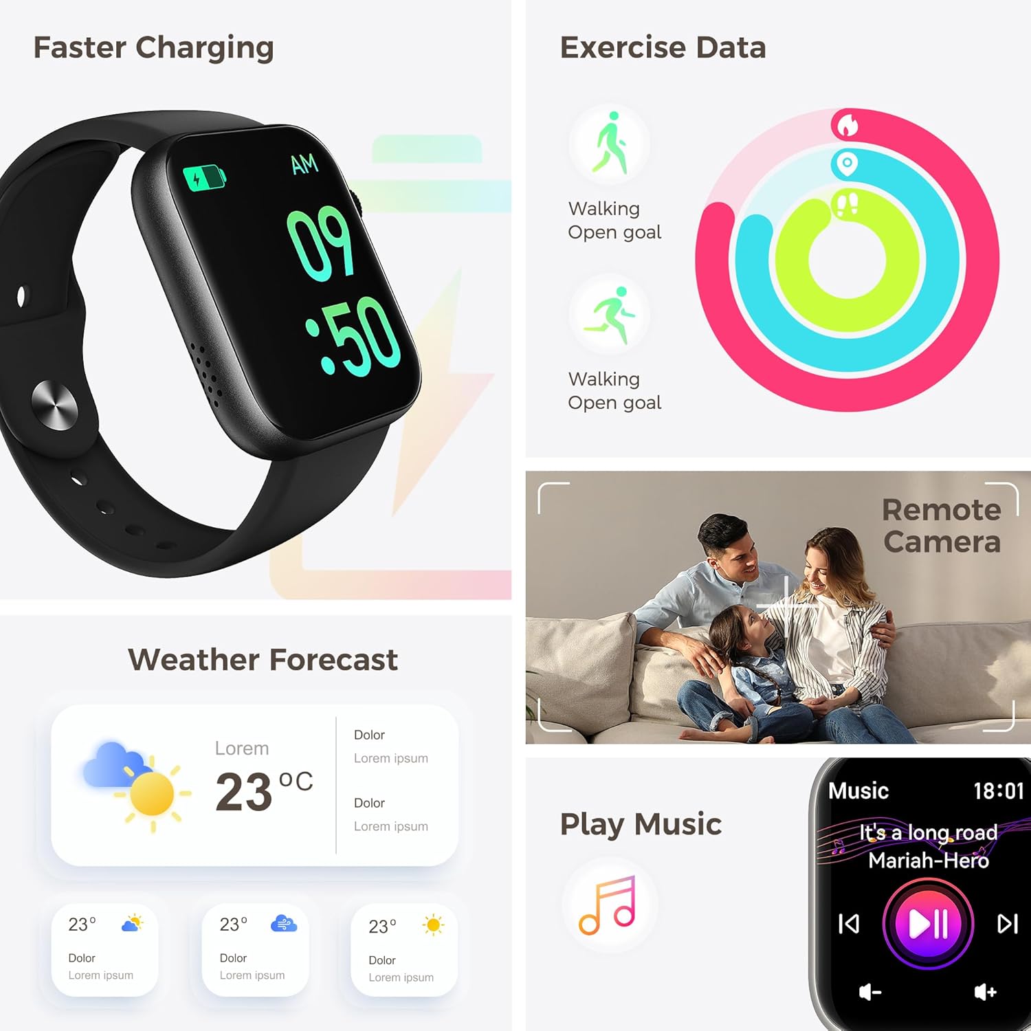 🏃【120+ Sports Modes, Count Every Workout】An ultimate easy-to-use smart watch with 120+ sports modes. From basketball and football to yoga and Pilates, whether you’re a professional athlete or daily exercise, allowing you to get data for all your favorite sports. You can set a variety of goals for different workout types on app, such as Pace, Distance, and Calorie goal which help better understand exercise status and track progress. Water-resistance can withstand all your daily activities usage.