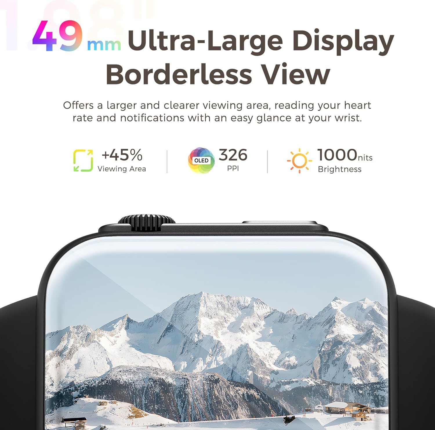 ⌚【Fully Upgraded 49mm Smart Watch】49mm AMOLED ultra-large screen with borderless tech, offers a 45%* bigger viewing area, see everything you need on your smart watch. Tap or swipe on the full touch screen to get smooth operation response in milliseconds. Up to 100%RGB color gamut, brightness and resolution are greatly improved, providing excellent visual effects. High quality zinc alloy watch frame with 2.5D curved scratch-resistant glass, combining texture and durability.