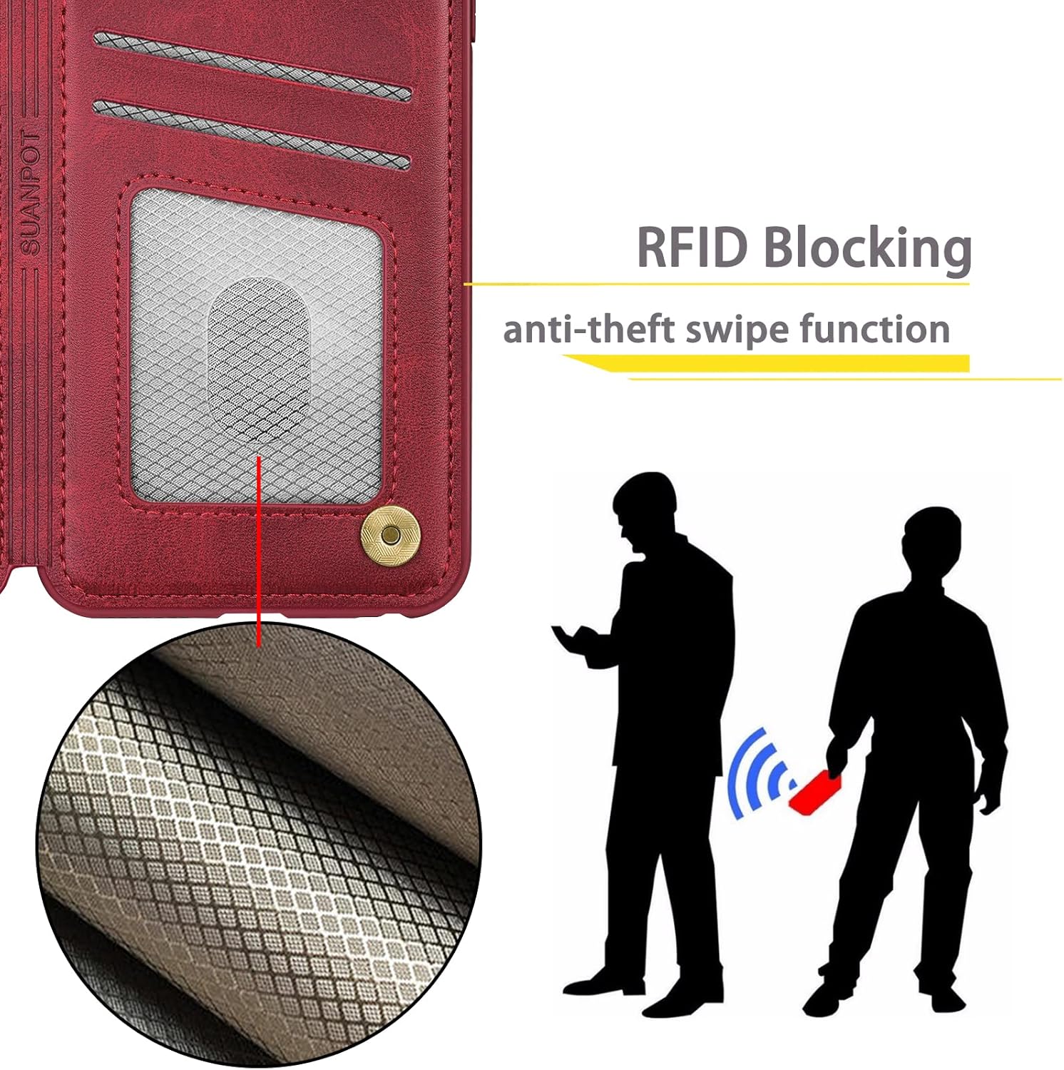 Only For iPhone 14 Pro 6.1″—-NOT Fit iPhone 14 6.1″/iPhone 14 Plus 6.7″/iPhone 14 Pro Max 6.7″, If you need another model leather wallet case, click on the one next to the title [Visit the SUANPOT Store]