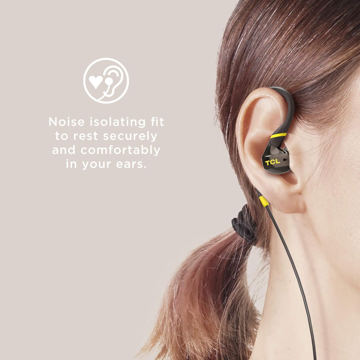 TCL Actv100 earbuds – nonstop Sound. Anywhere entertainment. Actv headphones give those who rarely miss a workout The extra boost they need to stay moving. The AC TV in-ear headset is crafted with an over-the-ear hook to ensure they stay secure through even the most intense workouts. Plus, being rated IPX4 waterproof, you can out up a sweat without any damage to the headphones.Actv100 in-ear headphones have potent 8.6mm audio drivers that produce powerful, thumping deep bass to keep you motivated. The precision engineered audio drivers, specially tuned by world-class acoustic engineers, offer excellent bass you can feel while providing crystal-clear, balanced sound. So, you’ll enjoy big, immersive sound no matter what’s on your playlist.Actv100 has been designed using extensive ergonomic research, ensuring a comfortable fit for continuous and long-term use. An in-line remote lets you stay in control while active. Switching songs and accepting or rejecting calls is simple, without needing to take your device out of your pocket.