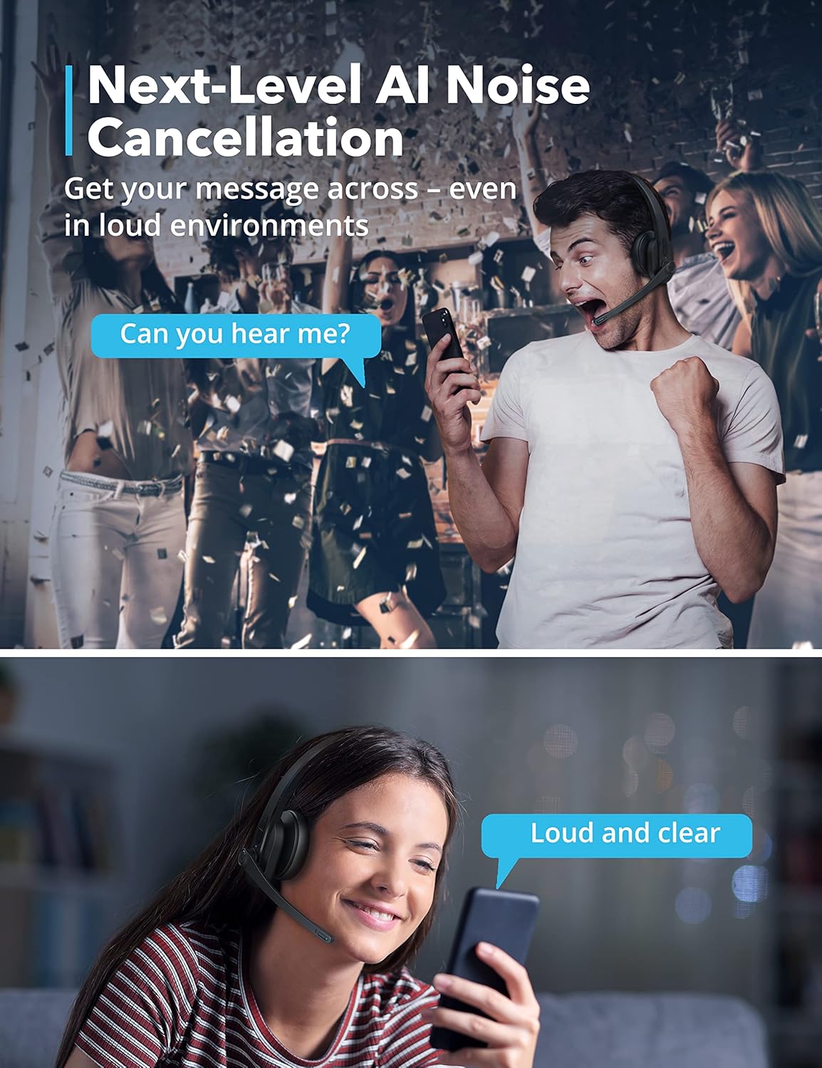 Superior Noise Cancellation: Eliminates Up To 96% Of Background Noise So That You Will Hear The People On The Other Side Clearly. The Wireless Headset With Noise Cancelling Mic Will Make Your Voices Is Crisp And Clear, And The Connection Is Strong With No Stutter Or Missed Communication.