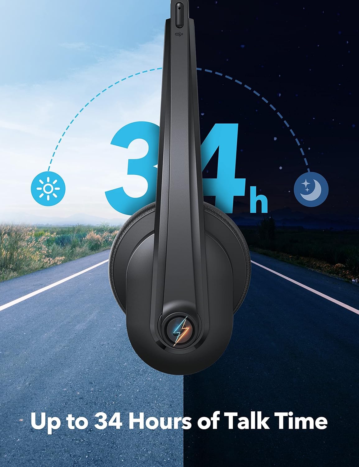 34H Playtime: The Wireless Headset Supports Up To 34 Hours For Continuous Talking, You Will Not Worry About Running Out Of Battery If You Just For Daily Usage, Always Ready To Answer Or Make Hands-Free Calls.